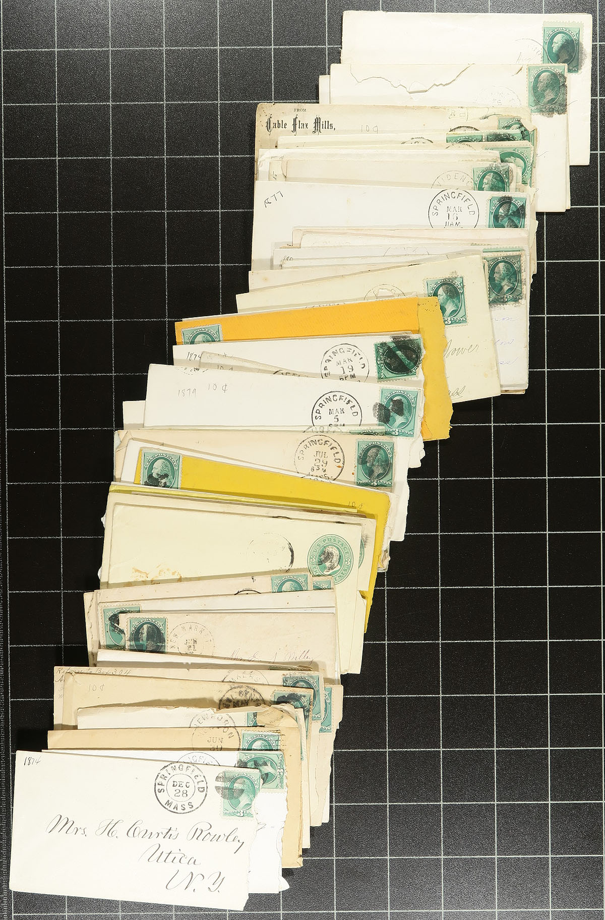 Accumulation of roughly 500 covers in a box, the vast majority being first day covers ranging from the 1940's to the 1980's, noting some private cachets, along with event covers, space covers, commercial covers (many from from the 1870's franked with the 3c Washington (Banknote perhaps) issue, paying the domestic rate), postal stationery, etc. A nice group for the cover collector, a few faults mostly with the commercial mail, overall fine to very fine. Estimate =