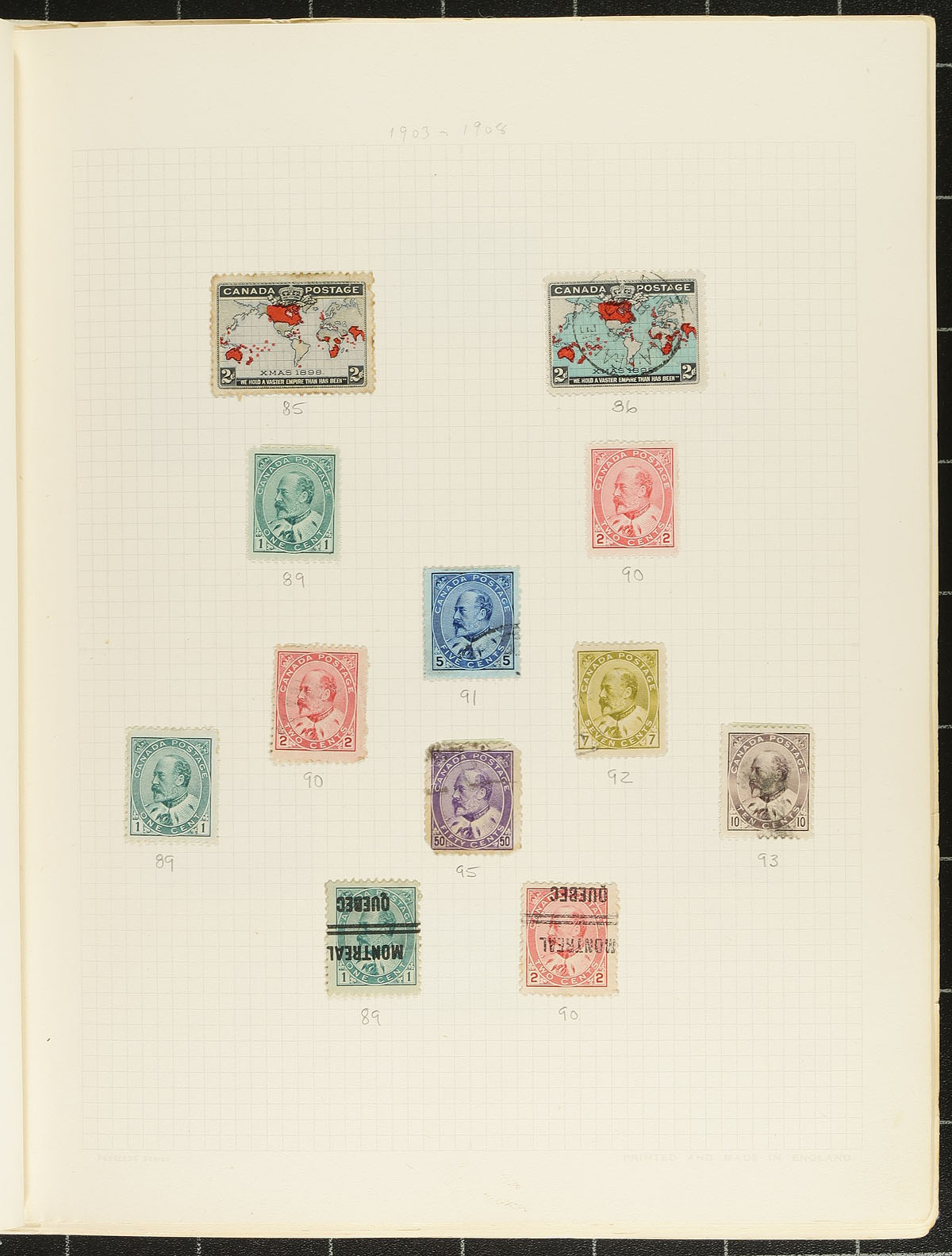 A bankers box with the balance of an estate in an assortment of albums, stockbooks and a good handful of loose pages, cards. Most of the collections are partial segments with some going back to #15 and others running into the 1990's. Some are mint, some are used, some are both. Some are collections, others were more "stock-like". We did see some higher cataloguing singles (e.g. Bluenose, 15c QV Jubilee) and there are a couple of jumbles of mint blocks that have potential. There could be some interesting cancels. A moderate amount of duplication is to be expected, as this material is from various sources. Some "back of the book" is scattered throughout. Estimate =
