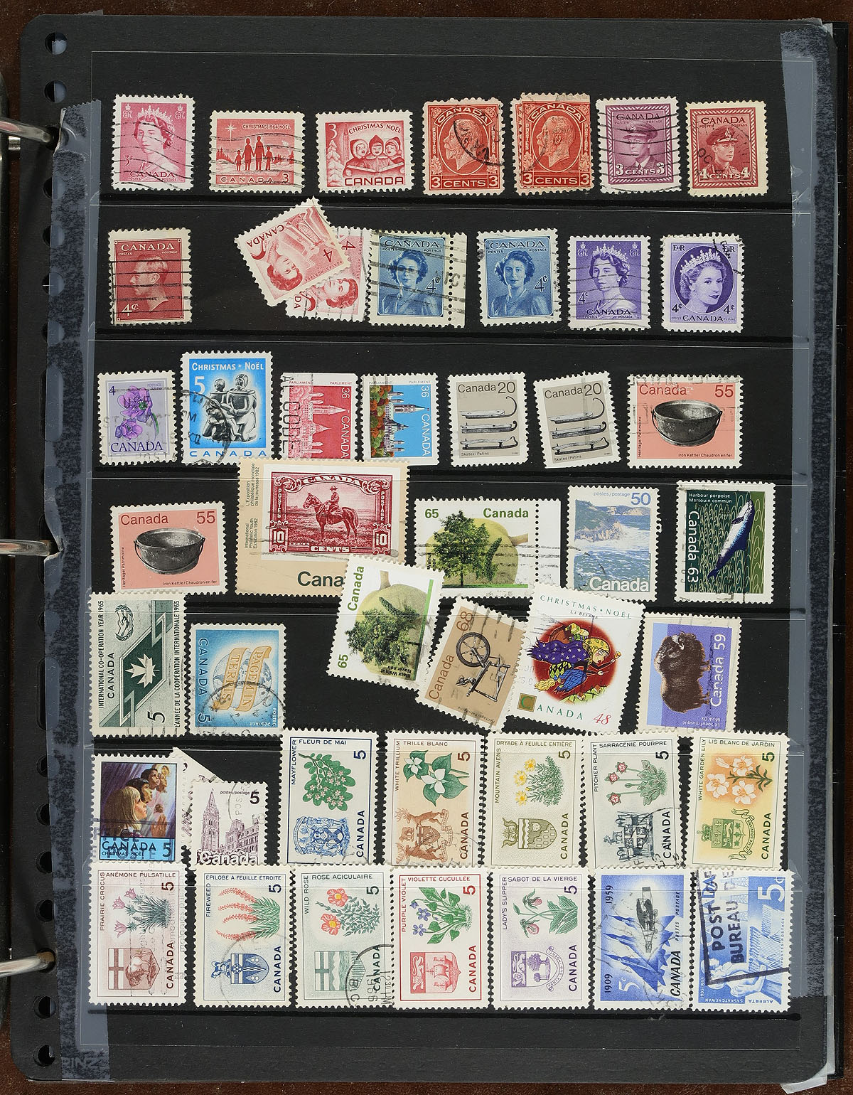 A bankers box with the balance of an estate in an assortment of albums, stockbooks and a good handful of loose pages, cards. Most of the collections are partial segments with some going back to #15 and others running into the 1990's. Some are mint, some are used, some are both. Some are collections, others were more "stock-like". We did see some higher cataloguing singles (e.g. Bluenose, 15c QV Jubilee) and there are a couple of jumbles of mint blocks that have potential. There could be some interesting cancels. A moderate amount of duplication is to be expected, as this material is from various sources. Some "back of the book" is scattered throughout. Estimate =