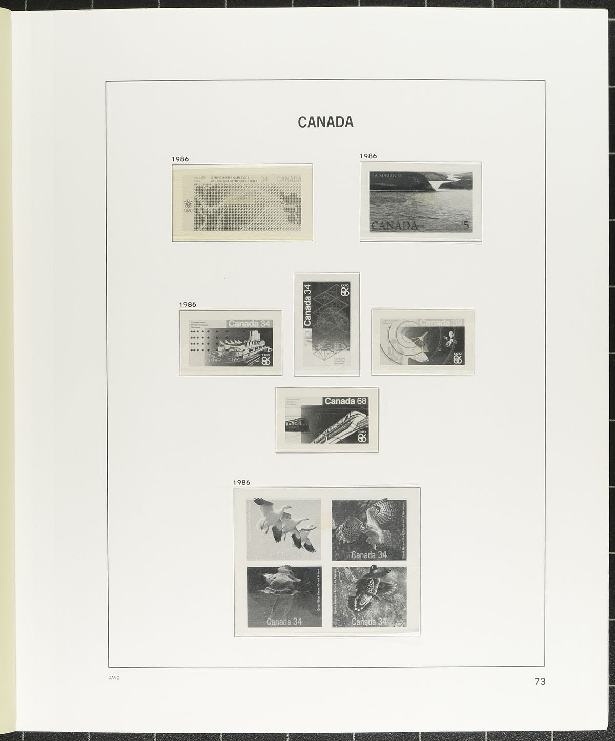 Regular Davo albums volume II and III covering 1965 to 2000, in 2-post binders with matching slipcases. Has owner-applied clear mounts, but no stamps. You can’t buy non-hingeless Davo albums anymore (new for these two volumes will set you back $800.00, and the binders alone retail for about $200.00). A nice way to get some classy albums covering the last third of the 20th century. Estimate =