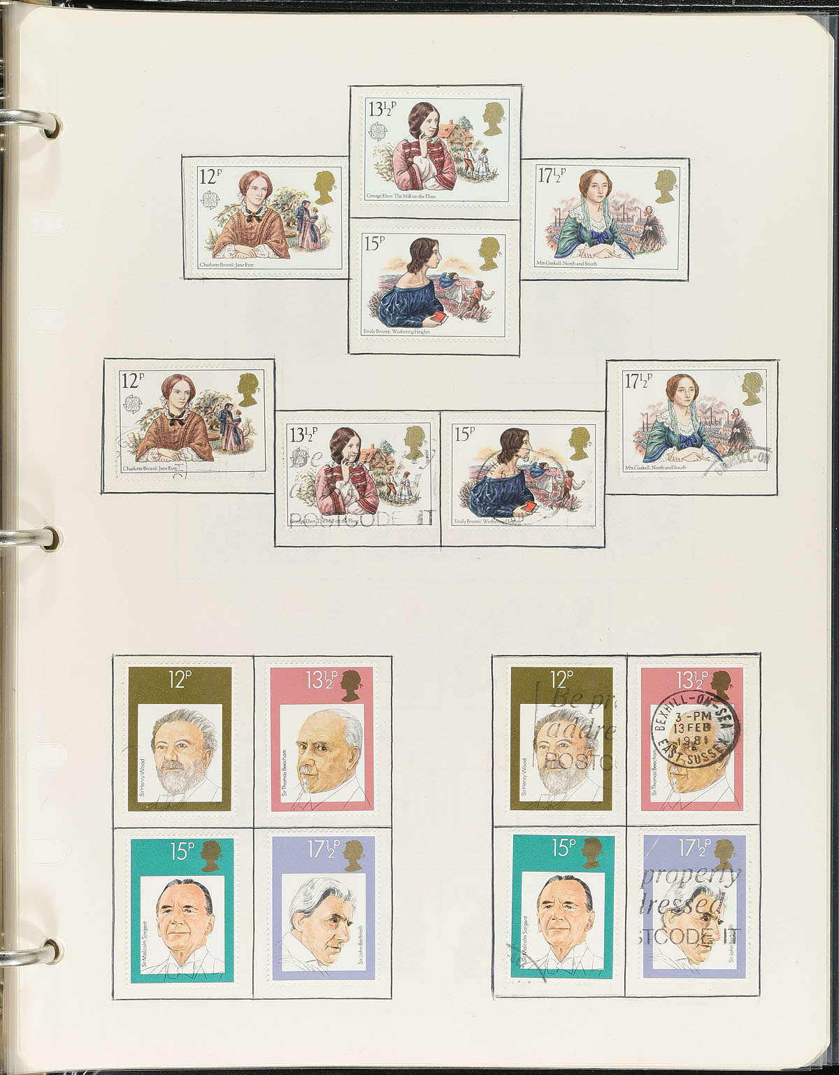 A quartet of partial mint and used 20th century collections, perfect for the collector looking for inexpensive albums or lots of modern stamps. The completely mint collection is 1936-1987 on quadrilled pages with lots of better (at one point the owner had catalogued it for close to $1000.00, but we are skeptical). A mint and used collection on 3-hole pages has 836 stamps, covering 1971-1983 (there will be a bit of useful face value here). A used collection covers the decimal era up to 1990 in a "Windsor Sovereign" 22-ring album (pages M#1-129 and #129-257). Finally, a Davo album has regular pages from 1971-1992 with a used collection of 700 stamps. Condition is overall quite good and duplication is to be expected. Estimate =