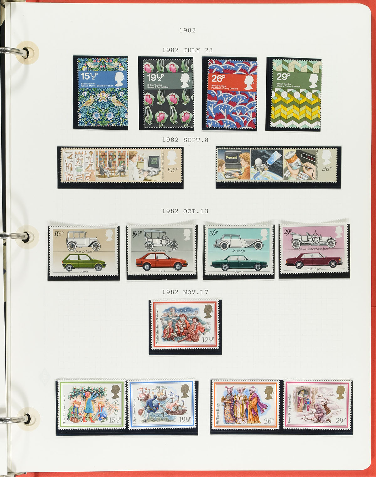 A quartet of partial mint and used 20th century collections, perfect for the collector looking for inexpensive albums or lots of modern stamps. The completely mint collection is 1936-1987 on quadrilled pages with lots of better (at one point the owner had catalogued it for close to $1000.00, but we are skeptical). A mint and used collection on 3-hole pages has 836 stamps, covering 1971-1983 (there will be a bit of useful face value here). A used collection covers the decimal era up to 1990 in a "Windsor Sovereign" 22-ring album (pages M#1-129 and #129-257). Finally, a Davo album has regular pages from 1971-1992 with a used collection of 700 stamps. Condition is overall quite good and duplication is to be expected. Estimate =