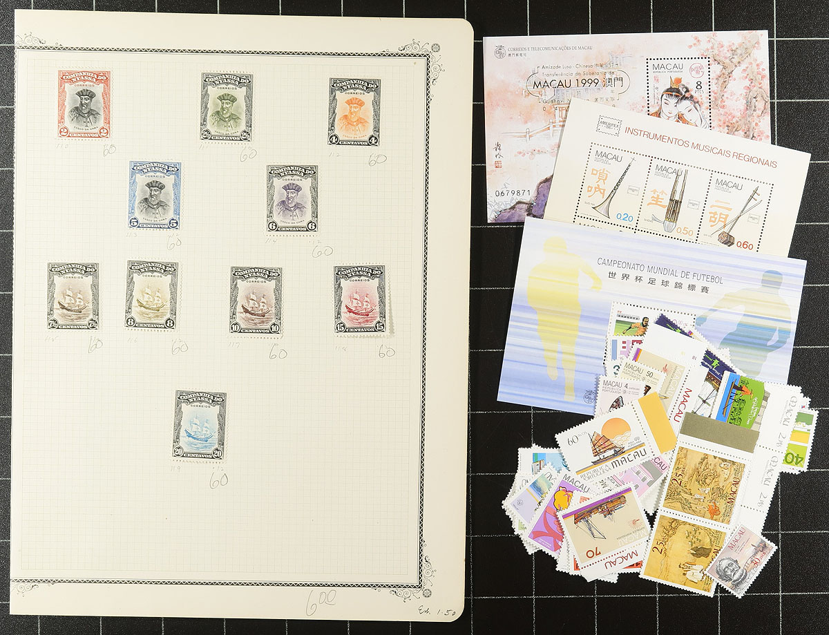 Macau, Timor and Nyassa, a mostly older assortment of sets and singles, mint and used, some mounted, some as purchased at auction such as the 1939 World’s Fair overprint from Timor. Includes some late 20th century mint Macau, with three souvenir sheets. The catalogue value will add up quickly here. Estimate =
