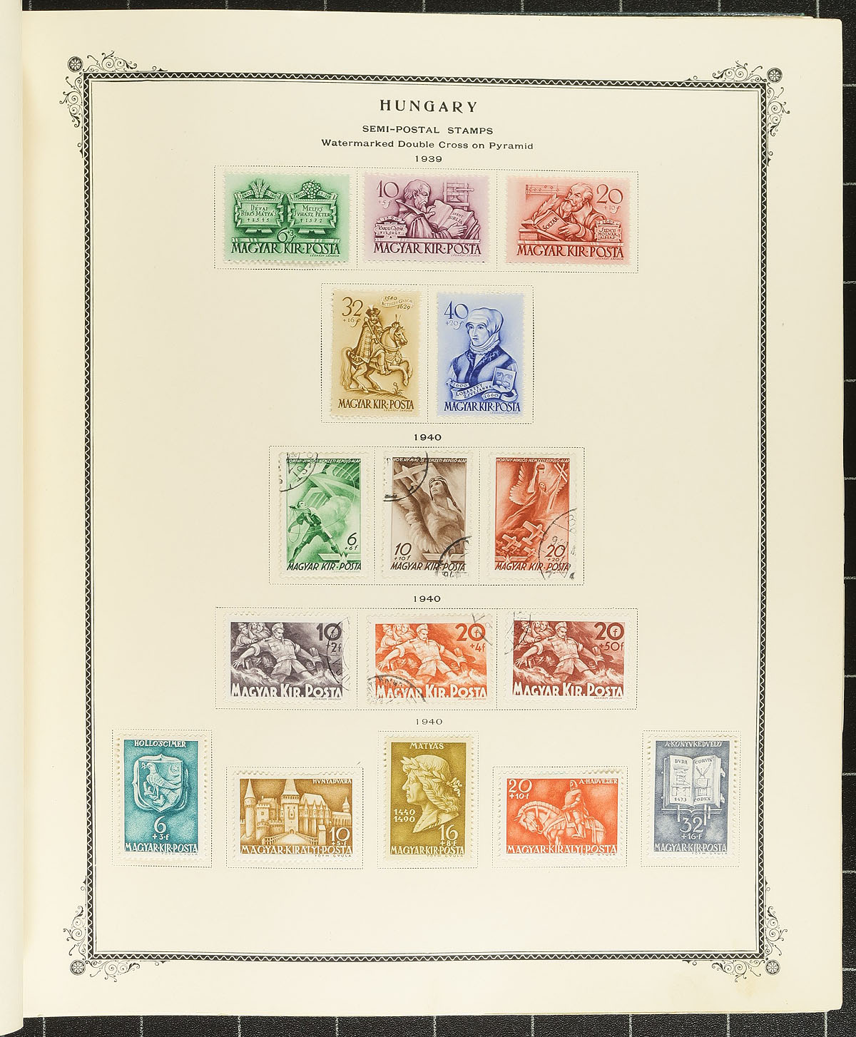 A pair of Scott Specialty Series, 2-post albums with pages from 1874 to 1983, containing over 2500 regular issues and souvenir sheets, plus another 900 back of the book, with strength in semi-postal, air mail and postage dues. The usual mix of mint (hinged and never hinged), used, cancelled to order, with a number of souvenir sheets. While none of the very expensive items are here, the quality is nice and with over 3400 items, the coverage is very comprehensive for the period. The retail value of the albums (if empty) is over $300.00. Estimate =