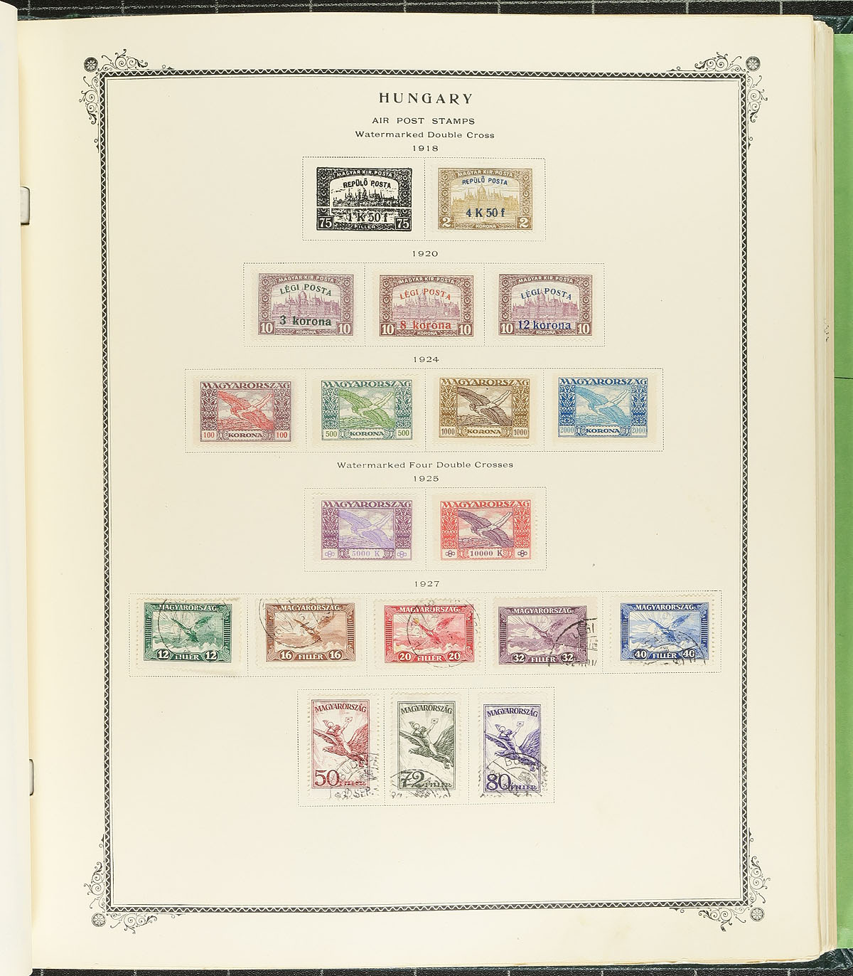 A pair of Scott Specialty Series, 2-post albums with pages from 1874 to 1983, containing over 2500 regular issues and souvenir sheets, plus another 900 back of the book, with strength in semi-postal, air mail and postage dues. The usual mix of mint (hinged and never hinged), used, cancelled to order, with a number of souvenir sheets. While none of the very expensive items are here, the quality is nice and with over 3400 items, the coverage is very comprehensive for the period. The retail value of the albums (if empty) is over $300.00. Estimate =
