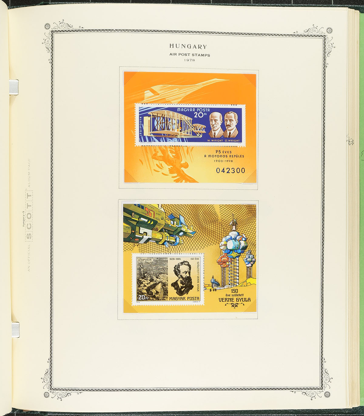 A pair of Scott Specialty Series, 2-post albums with pages from 1874 to 1983, containing over 2500 regular issues and souvenir sheets, plus another 900 back of the book, with strength in semi-postal, air mail and postage dues. The usual mix of mint (hinged and never hinged), used, cancelled to order, with a number of souvenir sheets. While none of the very expensive items are here, the quality is nice and with over 3400 items, the coverage is very comprehensive for the period. The retail value of the albums (if empty) is over $300.00. Estimate =