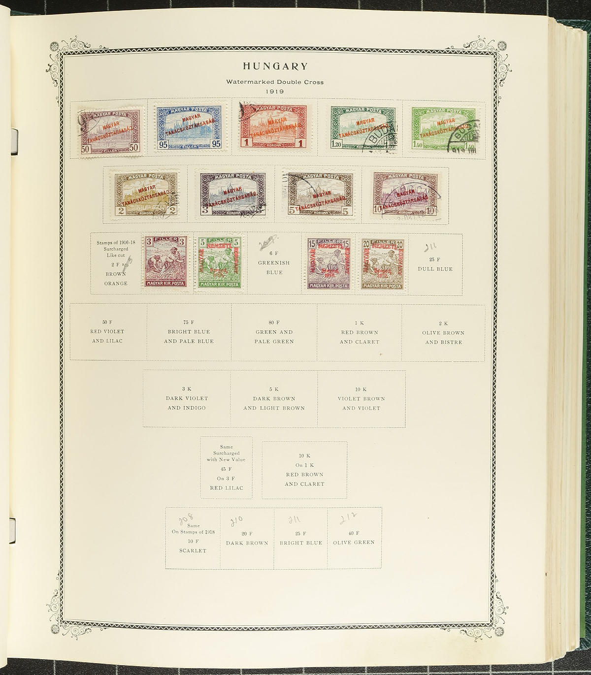 A pair of Scott Specialty Series, 2-post albums with pages from 1874 to 1983, containing over 2500 regular issues and souvenir sheets, plus another 900 back of the book, with strength in semi-postal, air mail and postage dues. The usual mix of mint (hinged and never hinged), used, cancelled to order, with a number of souvenir sheets. While none of the very expensive items are here, the quality is nice and with over 3400 items, the coverage is very comprehensive for the period. The retail value of the albums (if empty) is over $300.00. Estimate =