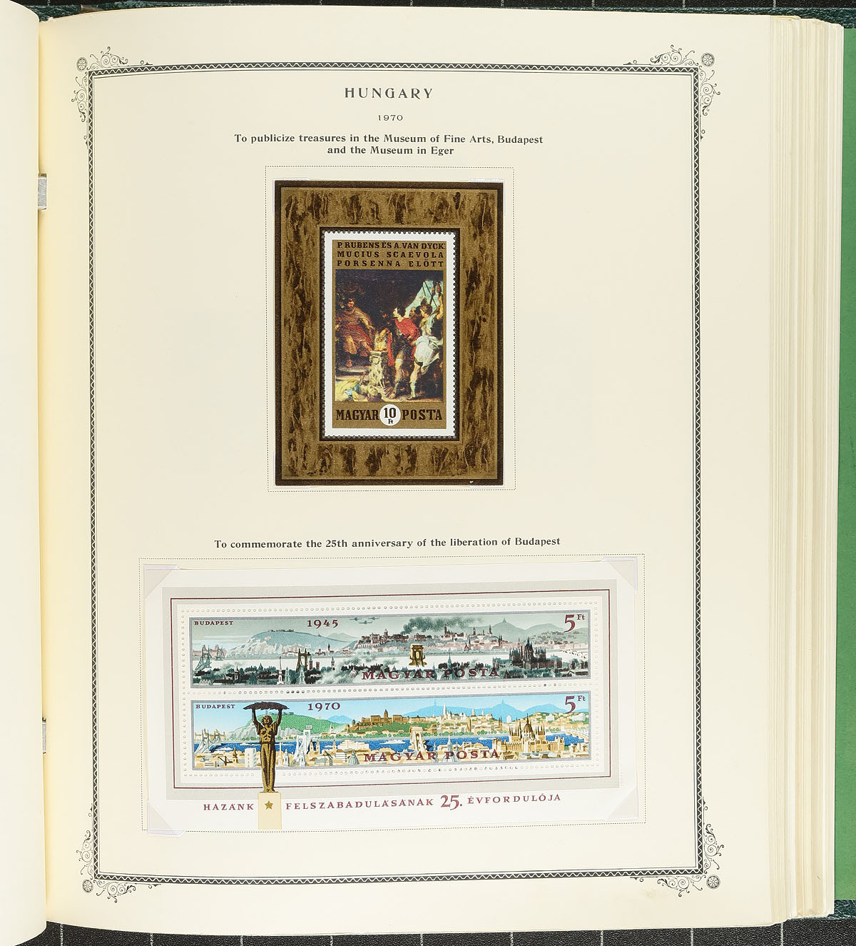 A pair of Scott Specialty Series, 2-post albums with pages from 1874 to 1983, containing over 2500 regular issues and souvenir sheets, plus another 900 back of the book, with strength in semi-postal, air mail and postage dues. The usual mix of mint (hinged and never hinged), used, cancelled to order, with a number of souvenir sheets. While none of the very expensive items are here, the quality is nice and with over 3400 items, the coverage is very comprehensive for the period. The retail value of the albums (if empty) is over $300.00. Estimate =