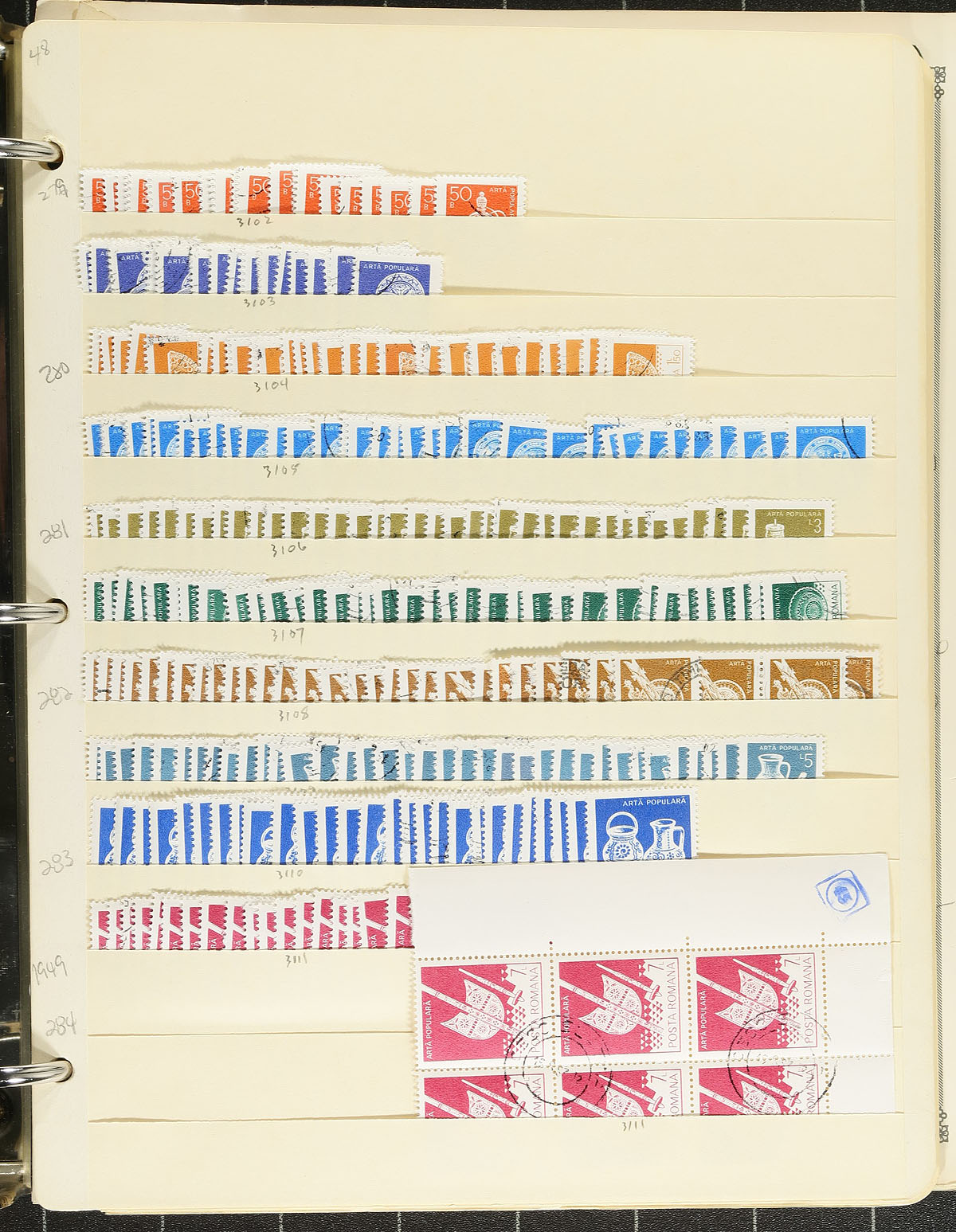 Three Eastern European country accumulations on stock and album pages. Two binders are Romania, one is 20th century Russia/USSR and the thinner binder contains Hungary. A mix of mint and used, with some back of the book and souvenir sheets. Light duplication throughout. A bit chaotic in its organization, so better items may lurk. Easily over 5,000 stamps here. Estimate =