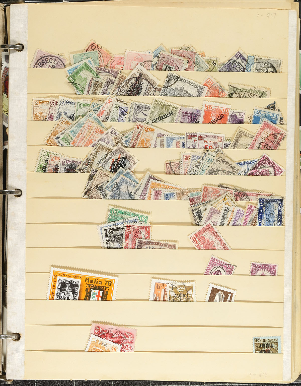 Three Eastern European country accumulations on stock and album pages. Two binders are Romania, one is 20th century Russia/USSR and the thinner binder contains Hungary. A mix of mint and used, with some back of the book and souvenir sheets. Light duplication throughout. A bit chaotic in its organization, so better items may lurk. Easily over 5,000 stamps here. Estimate =