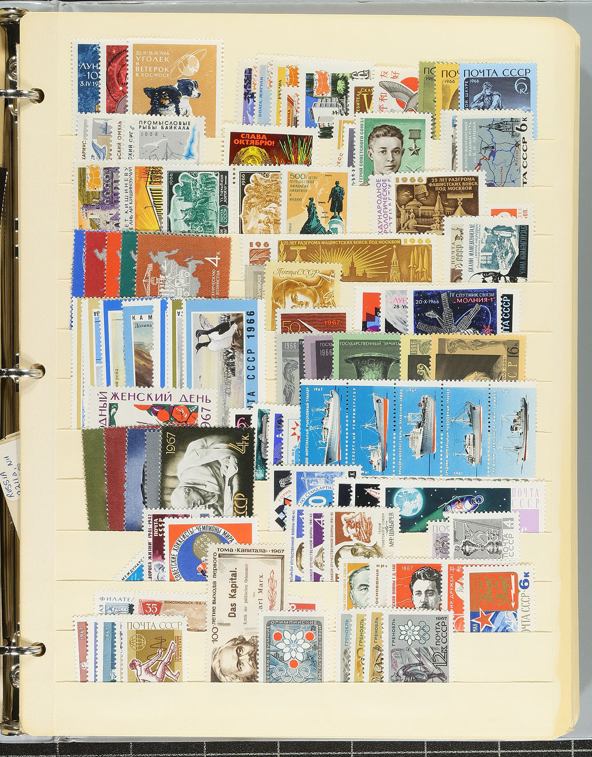 Three Eastern European country accumulations on stock and album pages. Two binders are Romania, one is 20th century Russia/USSR and the thinner binder contains Hungary. A mix of mint and used, with some back of the book and souvenir sheets. Light duplication throughout. A bit chaotic in its organization, so better items may lurk. Easily over 5,000 stamps here. Estimate =