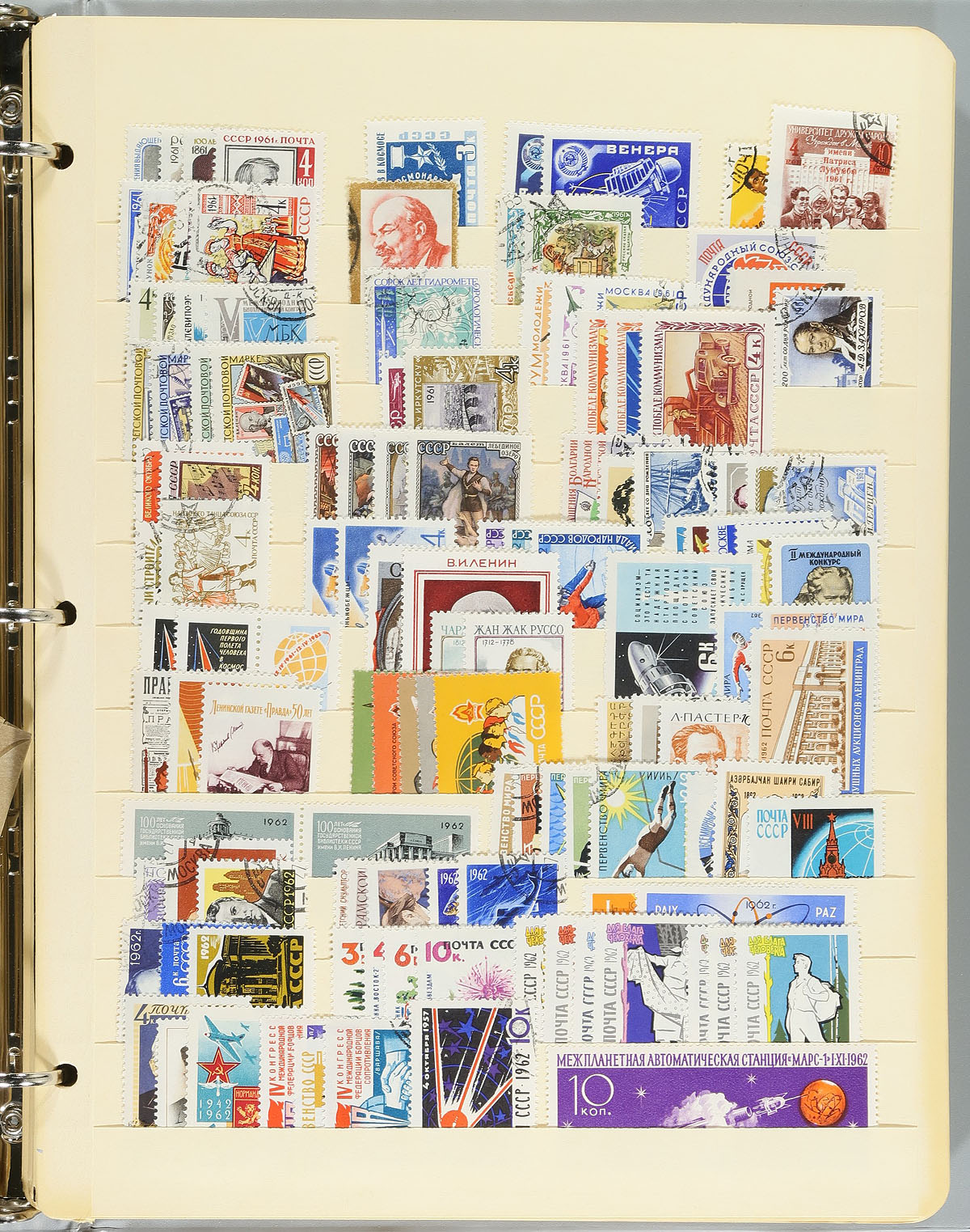 Three Eastern European country accumulations on stock and album pages. Two binders are Romania, one is 20th century Russia/USSR and the thinner binder contains Hungary. A mix of mint and used, with some back of the book and souvenir sheets. Light duplication throughout. A bit chaotic in its organization, so better items may lurk. Easily over 5,000 stamps here. Estimate =