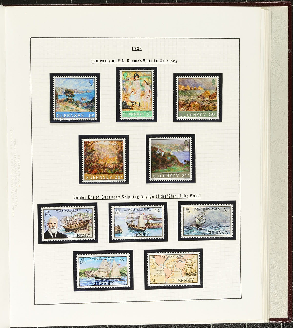 A comprehensive collection from 1969-2001 in black mounts in four "Plymouth" binders (with matching slipcases). Stamps appear never hinged, including most Scott-listed varieties, including a good run of booklet panes, se-tenant strips and mini-sheets. Fresh, attractive with 871 stamps, 57 souvenir sheets and 29 booklets/panes. The owner’s face value is £330.00 = $613.80 CDN. Estimate =