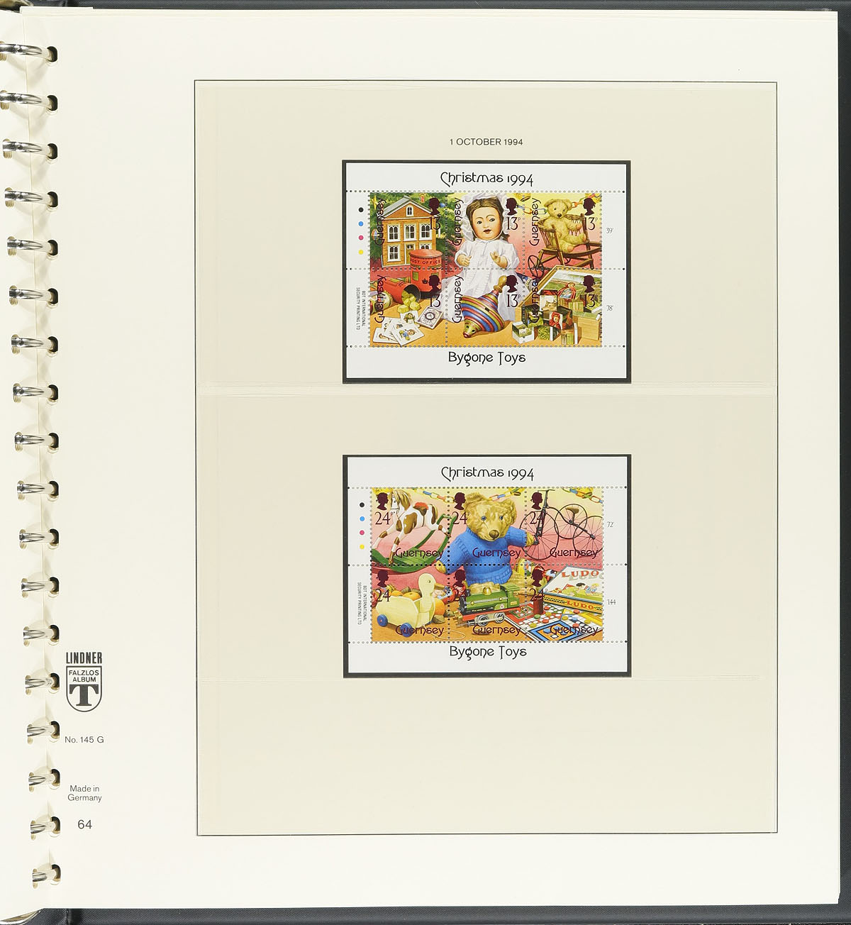 Mind the gap with this two-volume lot with a good range of never hinged stamps. The first is a Stanley Gibbons binder with a 98% complete mint collection up to 1986. The second is a Guernsey Post Office (Lindner) 16-ring binder from 1989 to 1996, looking quite complete with 184 stamps and 51 sheets (plus five first day covers and a complete booklet which we are not counting). The black album retails for about $250.00 and the face value of the stamps is £397.53 = $739.40 CDN. Estimate =