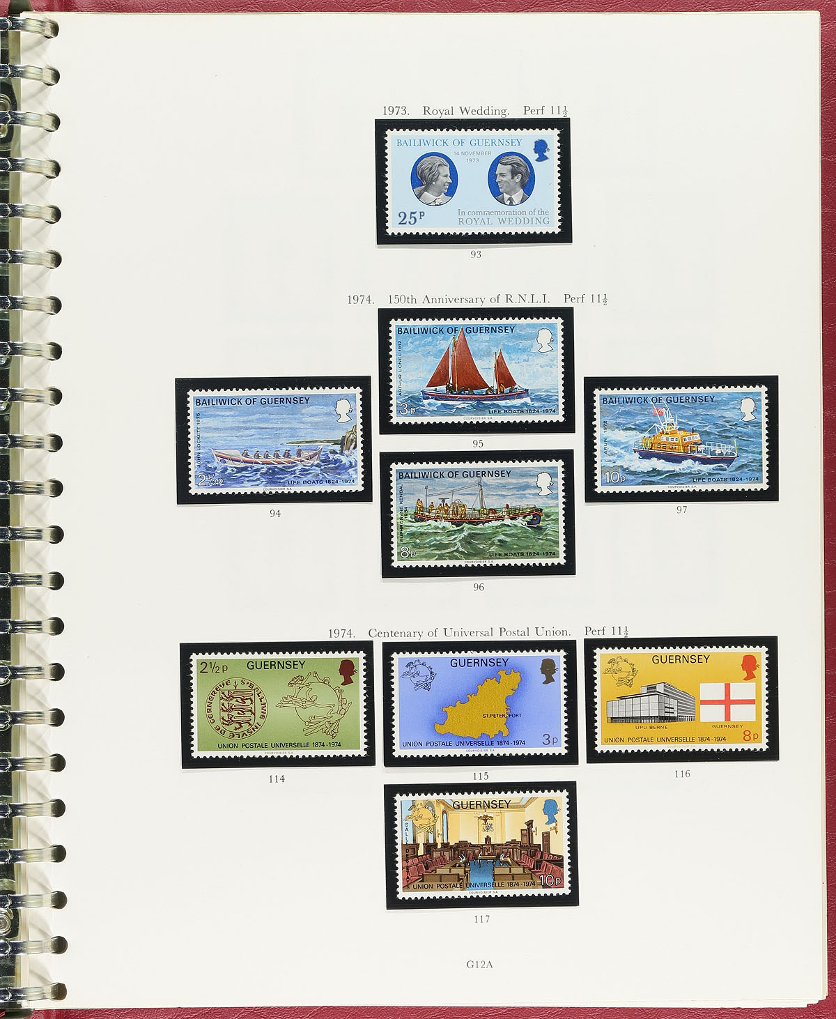Mind the gap with this two-volume lot with a good range of never hinged stamps. The first is a Stanley Gibbons binder with a 98% complete mint collection up to 1986. The second is a Guernsey Post Office (Lindner) 16-ring binder from 1989 to 1996, looking quite complete with 184 stamps and 51 sheets (plus five first day covers and a complete booklet which we are not counting). The black album retails for about $250.00 and the face value of the stamps is £397.53 = $739.40 CDN. Estimate =