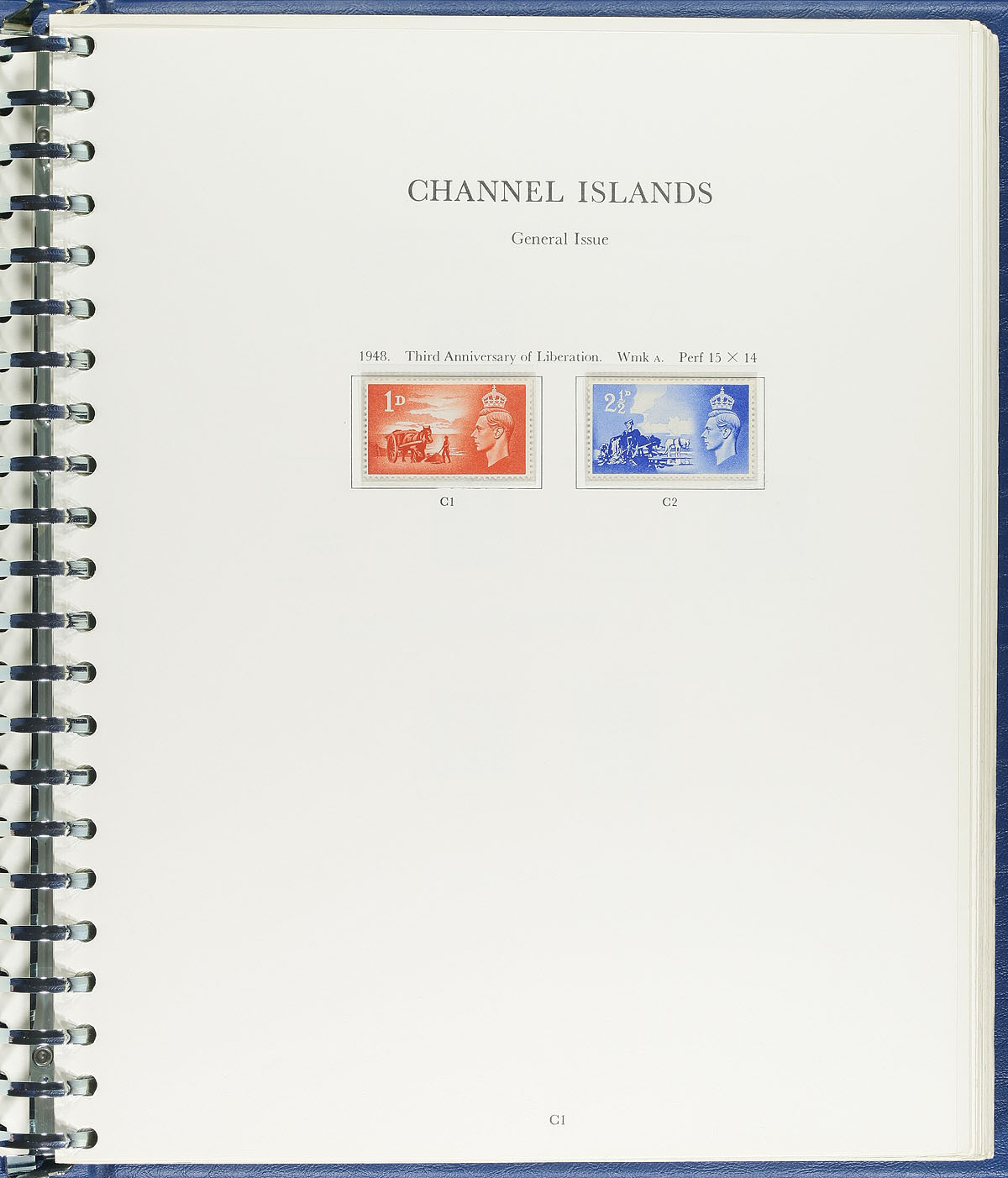 A three-binder quartet of mint Guernsey with a mix of collections (1969-85 in a "Collecta" album), a binder of never hinged (and lightly duplicated) booklets up to 1983 (17 are Guernsey, 37 are Jersey). There is a specialized group of the 1979-1980 "Coins" with booklets, panes, sheetlets (face value alone is £43.00). The final group is the 2002 Circus issue in singles, presentation folder, commemorative panes of 10 - difficult to find and face £28.20). A nice accumulation. Estimate =