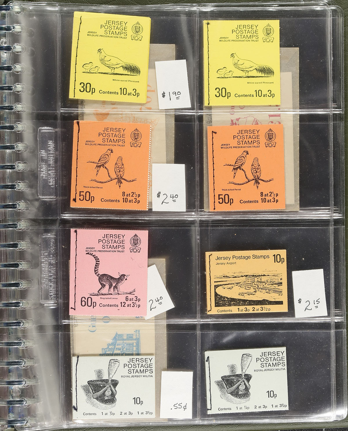 A three-binder quartet of mint Guernsey with a mix of collections (1969-85 in a "Collecta" album), a binder of never hinged (and lightly duplicated) booklets up to 1983 (17 are Guernsey, 37 are Jersey). There is a specialized group of the 1979-1980 "Coins" with booklets, panes, sheetlets (face value alone is £43.00). The final group is the 2002 Circus issue in singles, presentation folder, commemorative panes of 10 - difficult to find and face £28.20). A nice accumulation. Estimate =