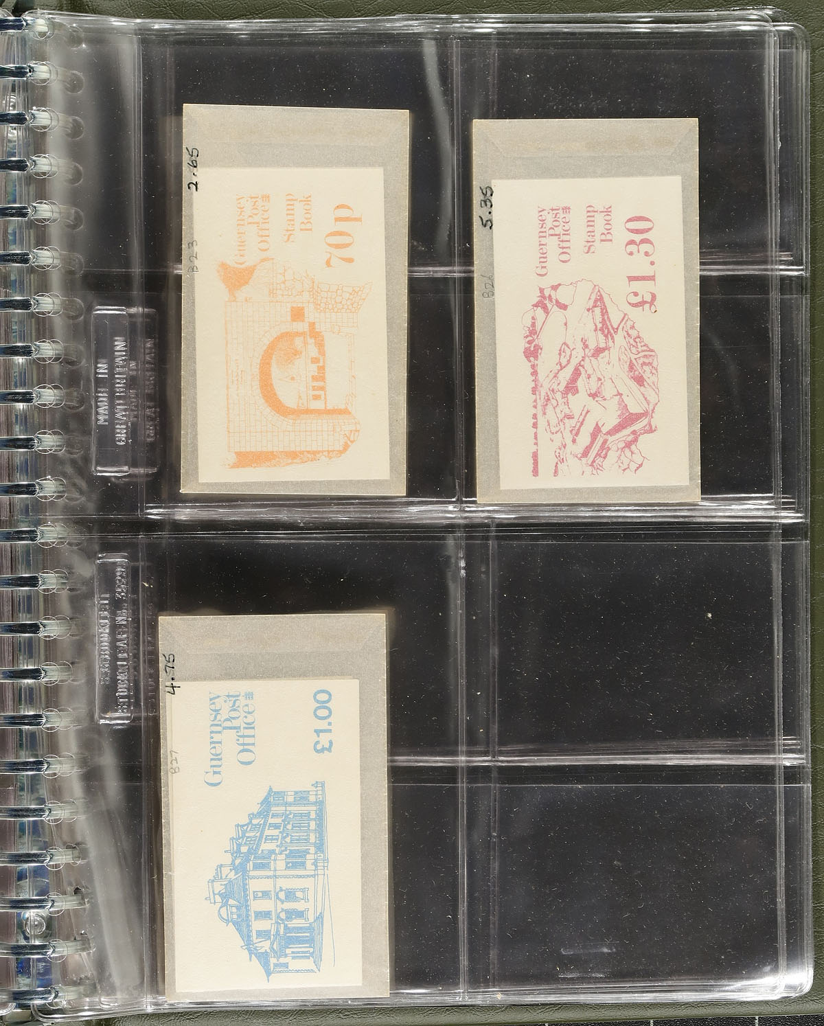 A three-binder quartet of mint Guernsey with a mix of collections (1969-85 in a "Collecta" album), a binder of never hinged (and lightly duplicated) booklets up to 1983 (17 are Guernsey, 37 are Jersey). There is a specialized group of the 1979-1980 "Coins" with booklets, panes, sheetlets (face value alone is £43.00). The final group is the 2002 Circus issue in singles, presentation folder, commemorative panes of 10 - difficult to find and face £28.20). A nice accumulation. Estimate =
