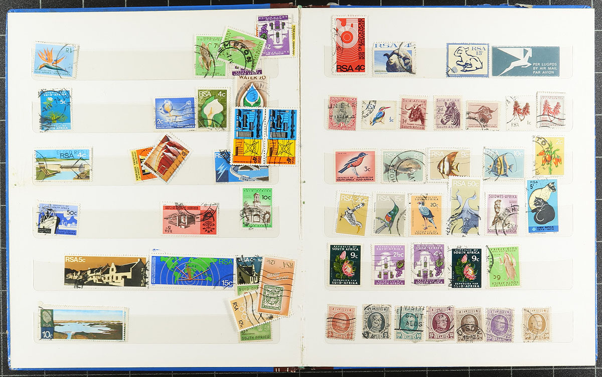 An estate balance, filling a bankers box. A mix of single and multi-country offerings, perfect for the philatelic hunter. There are a couple of older world-wide collections ("Modern" and "Strand" albums), a page of mint Australia, a few damaged used Scandinavia (with a faulty Greenland polar bear "#Q4a, cat $550.00!). A mostly modern study of post office cancels from Rhodesia/Zimbabwe has some potential, as does a few loose pages of India and New Zealand. There is a stockbook with Vatican City, some turn of the millennium CTO souvenir sheets and mini-sheets from Mozambique and a bit of China, Europe and Africa on loose pages. Estimate =