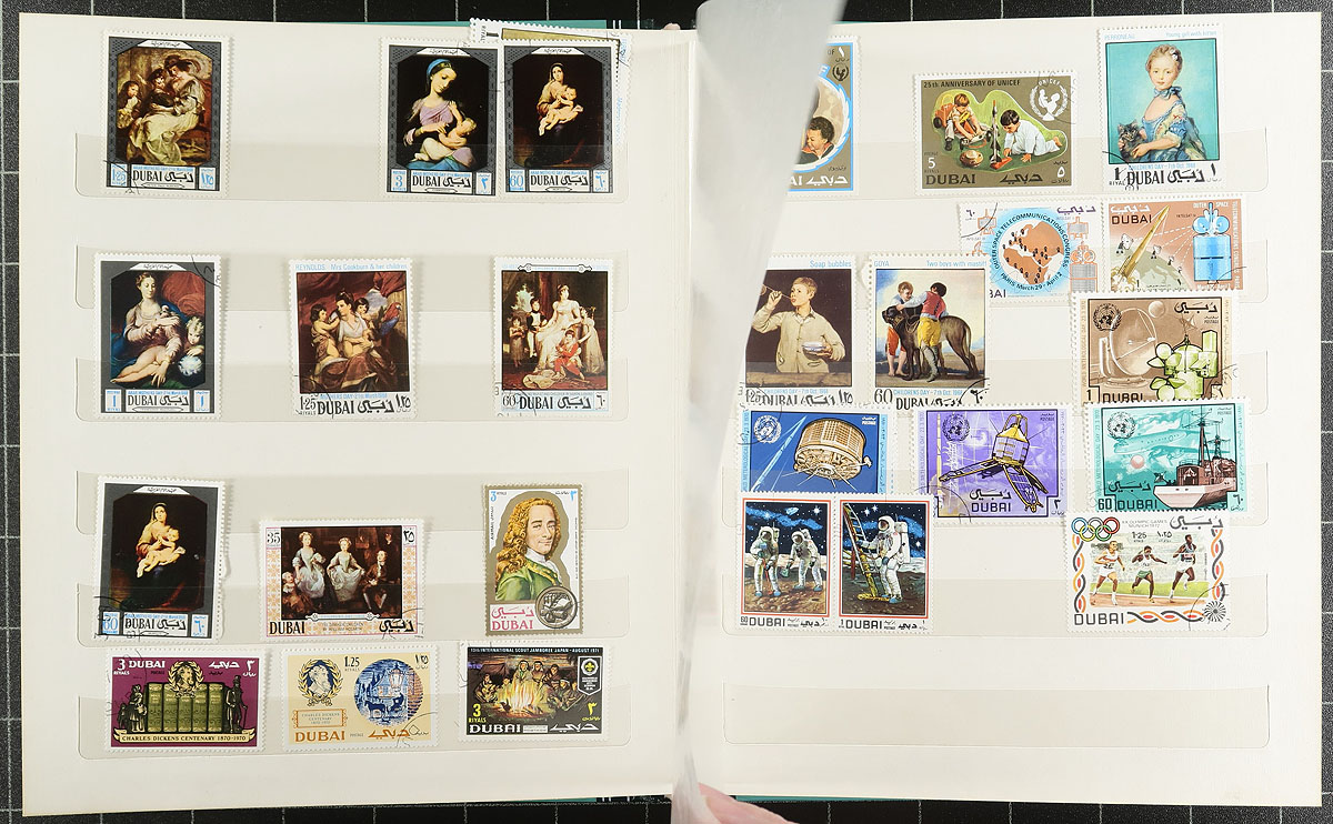 An estate balance, filling a bankers box. A mix of single and multi-country offerings, perfect for the philatelic hunter. There are a couple of older world-wide collections ("Modern" and "Strand" albums), a page of mint Australia, a few damaged used Scandinavia (with a faulty Greenland polar bear "#Q4a, cat $550.00!). A mostly modern study of post office cancels from Rhodesia/Zimbabwe has some potential, as does a few loose pages of India and New Zealand. There is a stockbook with Vatican City, some turn of the millennium CTO souvenir sheets and mini-sheets from Mozambique and a bit of China, Europe and Africa on loose pages. Estimate =