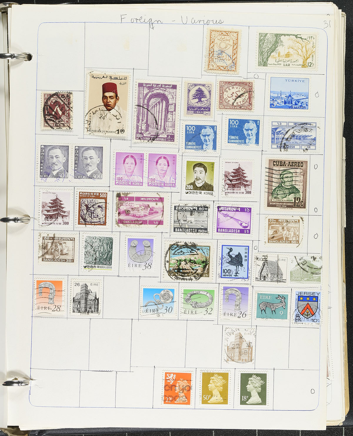 An estate balance, filling a bankers box. A mix of single and multi-country offerings, perfect for the philatelic hunter. There are a couple of older world-wide collections ("Modern" and "Strand" albums), a page of mint Australia, a few damaged used Scandinavia (with a faulty Greenland polar bear "#Q4a, cat $550.00!). A mostly modern study of post office cancels from Rhodesia/Zimbabwe has some potential, as does a few loose pages of India and New Zealand. There is a stockbook with Vatican City, some turn of the millennium CTO souvenir sheets and mini-sheets from Mozambique and a bit of China, Europe and Africa on loose pages. Estimate =