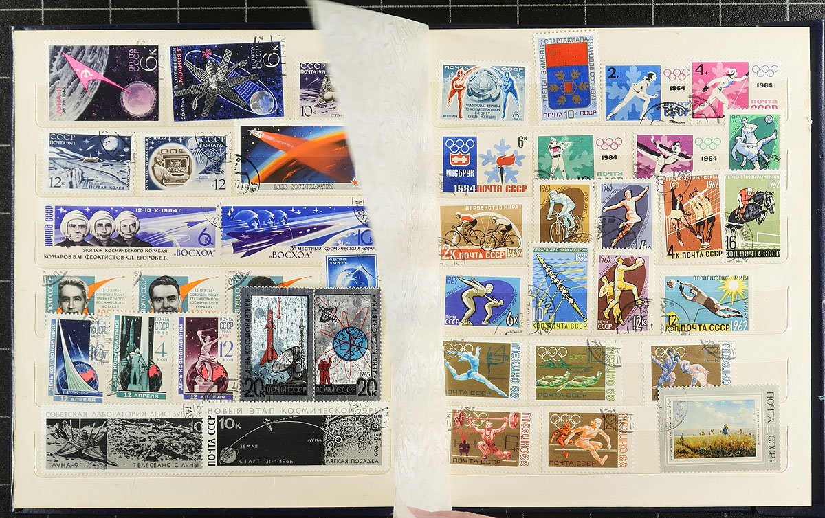 An estate balance, filling a bankers box. A mix of single and multi-country offerings, perfect for the philatelic hunter. There are a couple of older world-wide collections ("Modern" and "Strand" albums), a page of mint Australia, a few damaged used Scandinavia (with a faulty Greenland polar bear "#Q4a, cat $550.00!). A mostly modern study of post office cancels from Rhodesia/Zimbabwe has some potential, as does a few loose pages of India and New Zealand. There is a stockbook with Vatican City, some turn of the millennium CTO souvenir sheets and mini-sheets from Mozambique and a bit of China, Europe and Africa on loose pages. Estimate =
