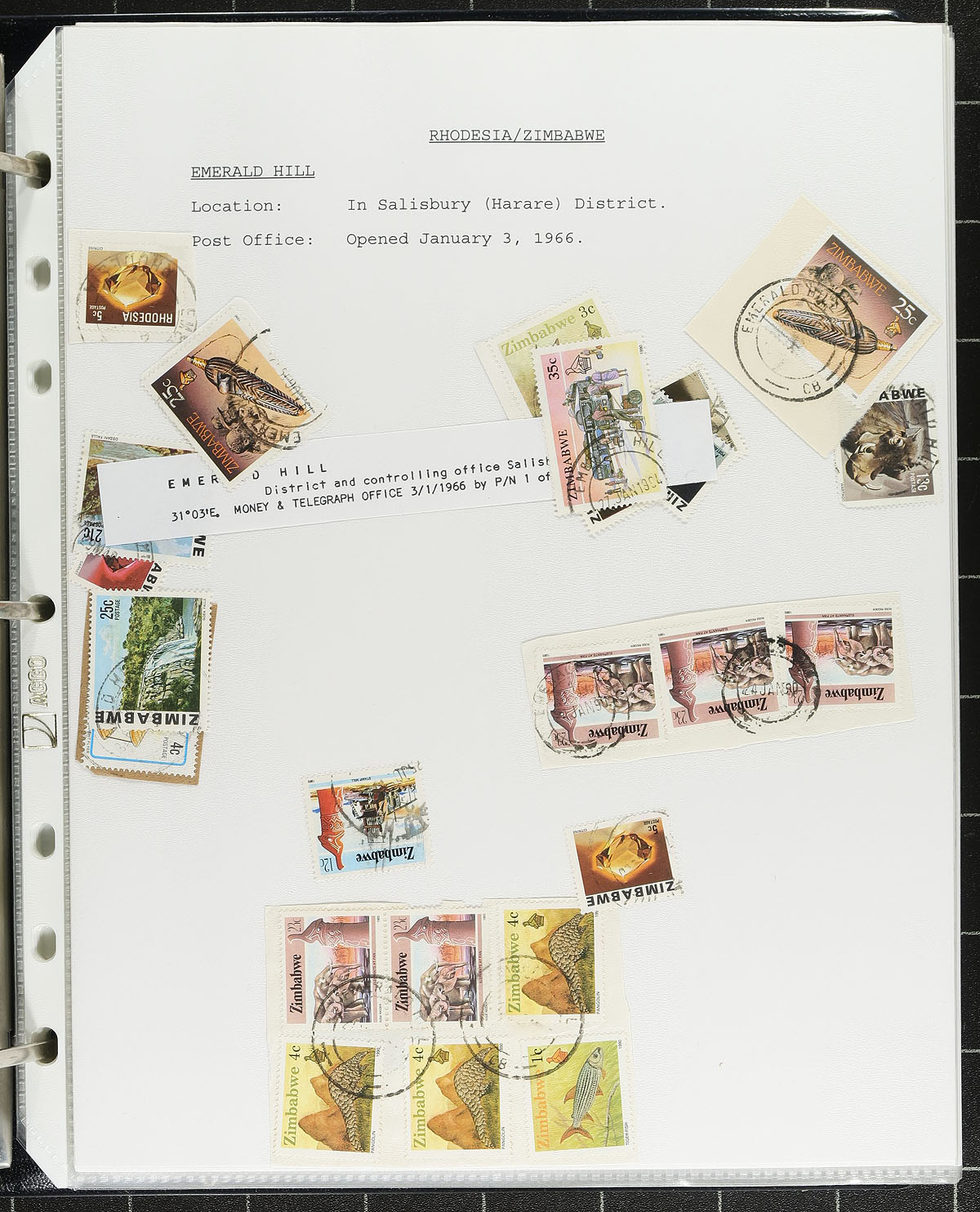 An estate balance, filling a bankers box. A mix of single and multi-country offerings, perfect for the philatelic hunter. There are a couple of older world-wide collections ("Modern" and "Strand" albums), a page of mint Australia, a few damaged used Scandinavia (with a faulty Greenland polar bear "#Q4a, cat $550.00!). A mostly modern study of post office cancels from Rhodesia/Zimbabwe has some potential, as does a few loose pages of India and New Zealand. There is a stockbook with Vatican City, some turn of the millennium CTO souvenir sheets and mini-sheets from Mozambique and a bit of China, Europe and Africa on loose pages. Estimate =