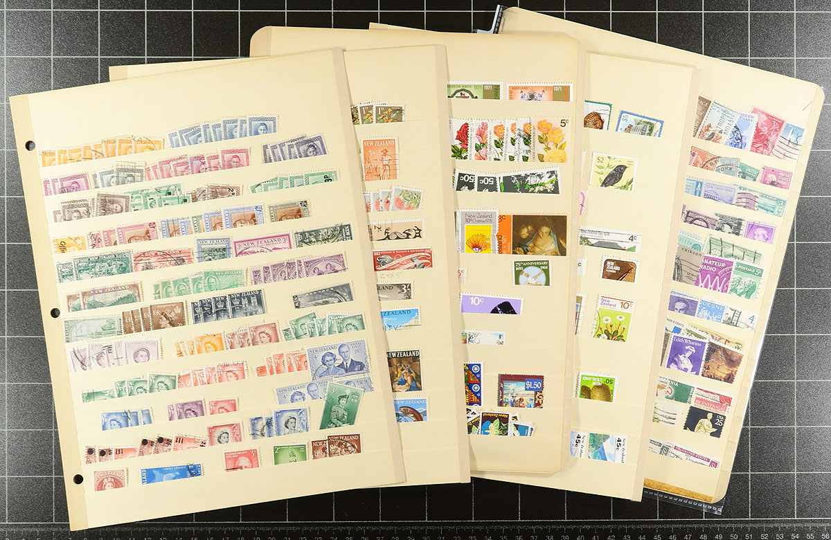 An estate balance, filling a bankers box. A mix of single and multi-country offerings, perfect for the philatelic hunter. There are a couple of older world-wide collections ("Modern" and "Strand" albums), a page of mint Australia, a few damaged used Scandinavia (with a faulty Greenland polar bear "#Q4a, cat $550.00!). A mostly modern study of post office cancels from Rhodesia/Zimbabwe has some potential, as does a few loose pages of India and New Zealand. There is a stockbook with Vatican City, some turn of the millennium CTO souvenir sheets and mini-sheets from Mozambique and a bit of China, Europe and Africa on loose pages. Estimate =