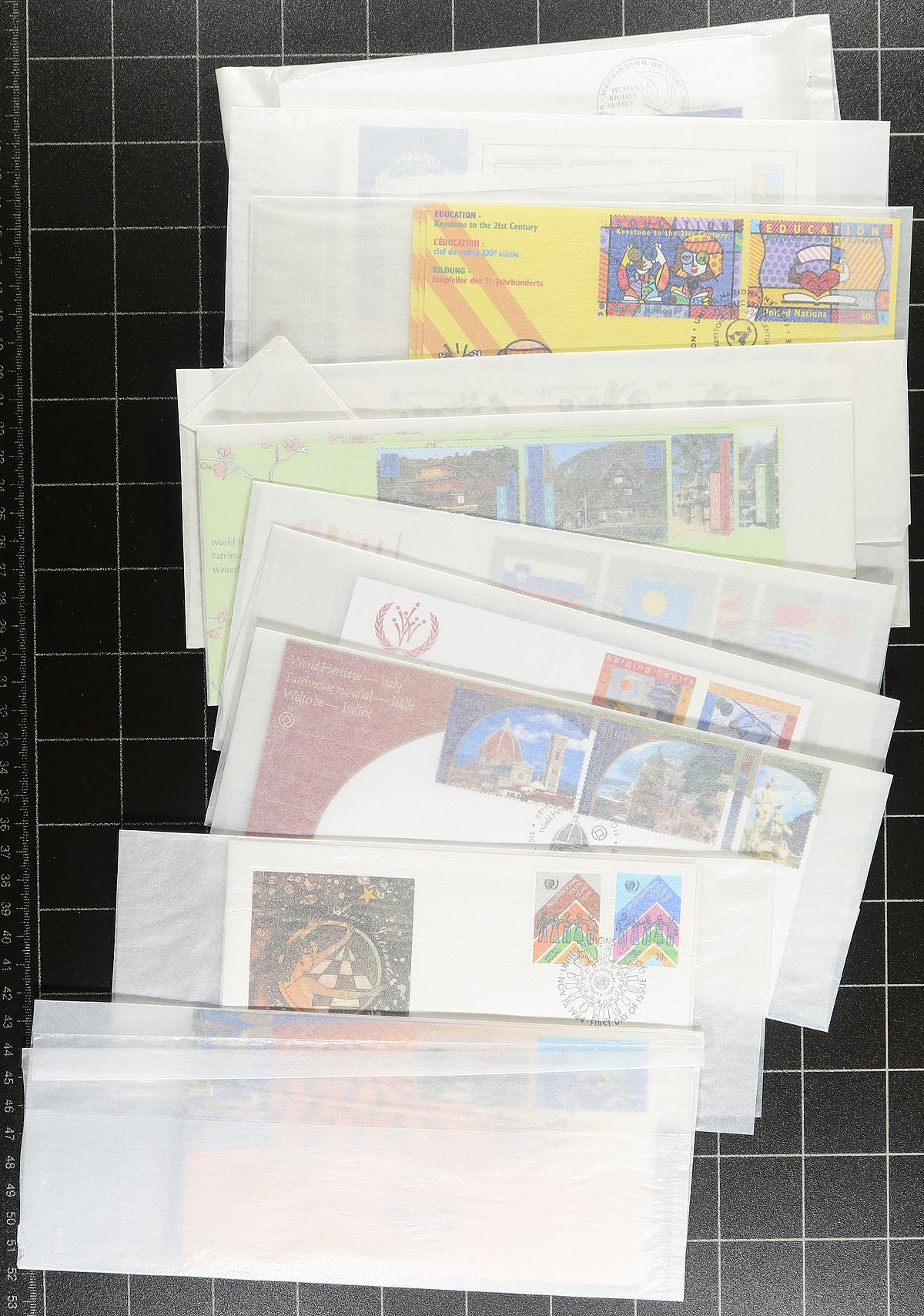 All different UN Philatelic Agency cachet First Day Cover assortment, from all three offices, ranging from 1981-2005. Lots of trios and complete sets and a few of the larger format first day covers. All unaddressed and most are still in their original glassines and have never been touched by collector hands. The original cost of these was several hundred US dollars (fills a small box). We don’t see much UN from the past 25 years. Estimate =