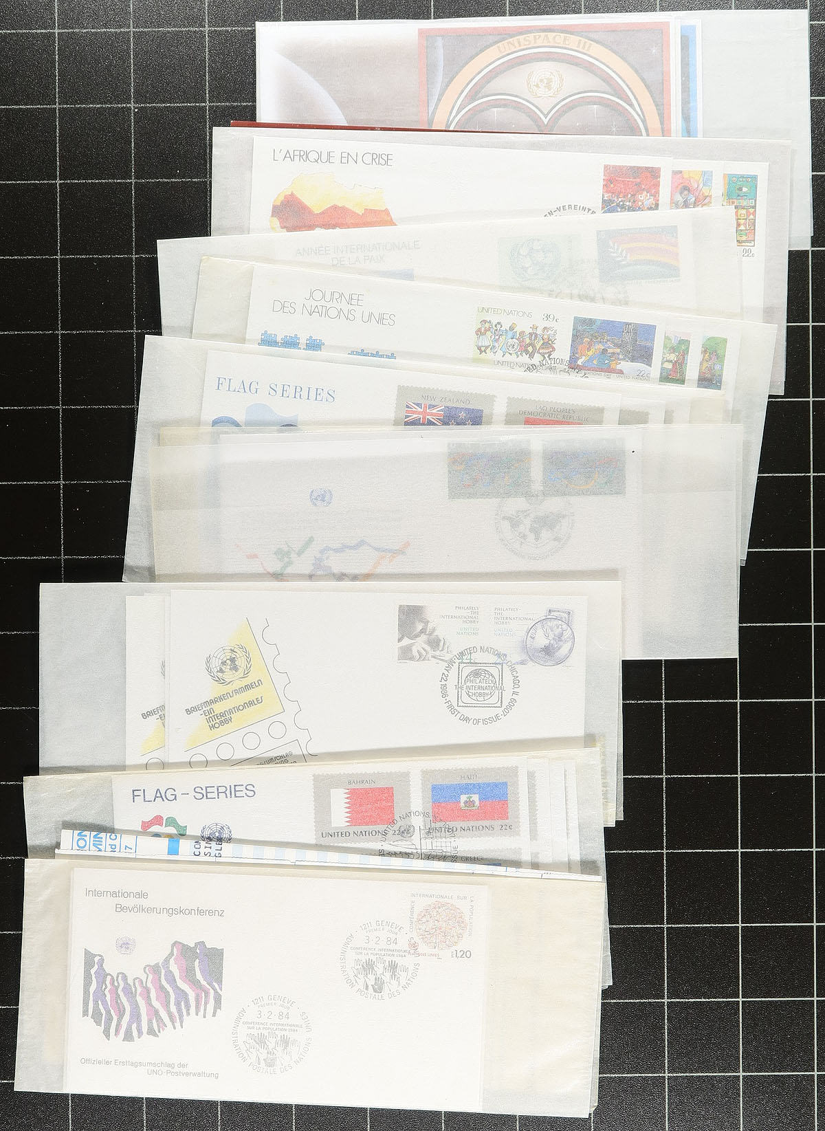 All different UN Philatelic Agency cachet First Day Cover assortment, from all three offices, ranging from 1981-2005. Lots of trios and complete sets and a few of the larger format first day covers. All unaddressed and most are still in their original glassines and have never been touched by collector hands. The original cost of these was several hundred US dollars (fills a small box). We don’t see much UN from the past 25 years. Estimate =