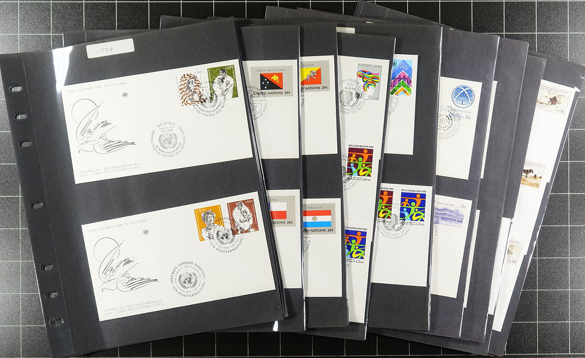 Bankers box first day cover hoard from a local estate. The first section consists of four binders with 1951-1974 (cachets start with Fleetwood, including the good souvenir sheet), Artmaster and then Artcraft).The second is a pair of albums with a number of loose FDCs (often in their original glassines) - these are mostly 1970-1986 including postal stationery from a range of cachet manufacturers. A few hundred FDCs. Estimate =