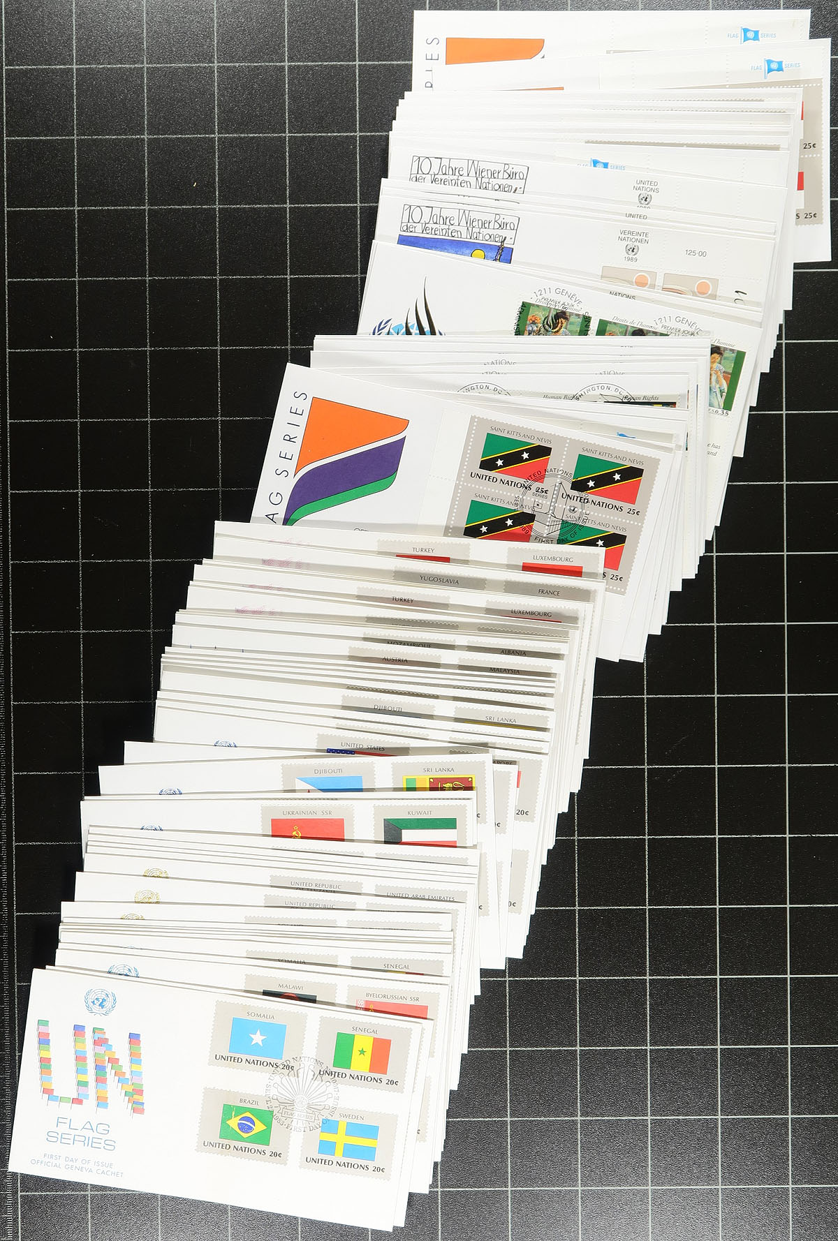 Bankers box first day cover hoard from a local estate. The first section consists of four binders with 1951-1974 (cachets start with Fleetwood, including the good souvenir sheet), Artmaster and then Artcraft).The second is a pair of albums with a number of loose FDCs (often in their original glassines) - these are mostly 1970-1986 including postal stationery from a range of cachet manufacturers. A few hundred FDCs. Estimate =