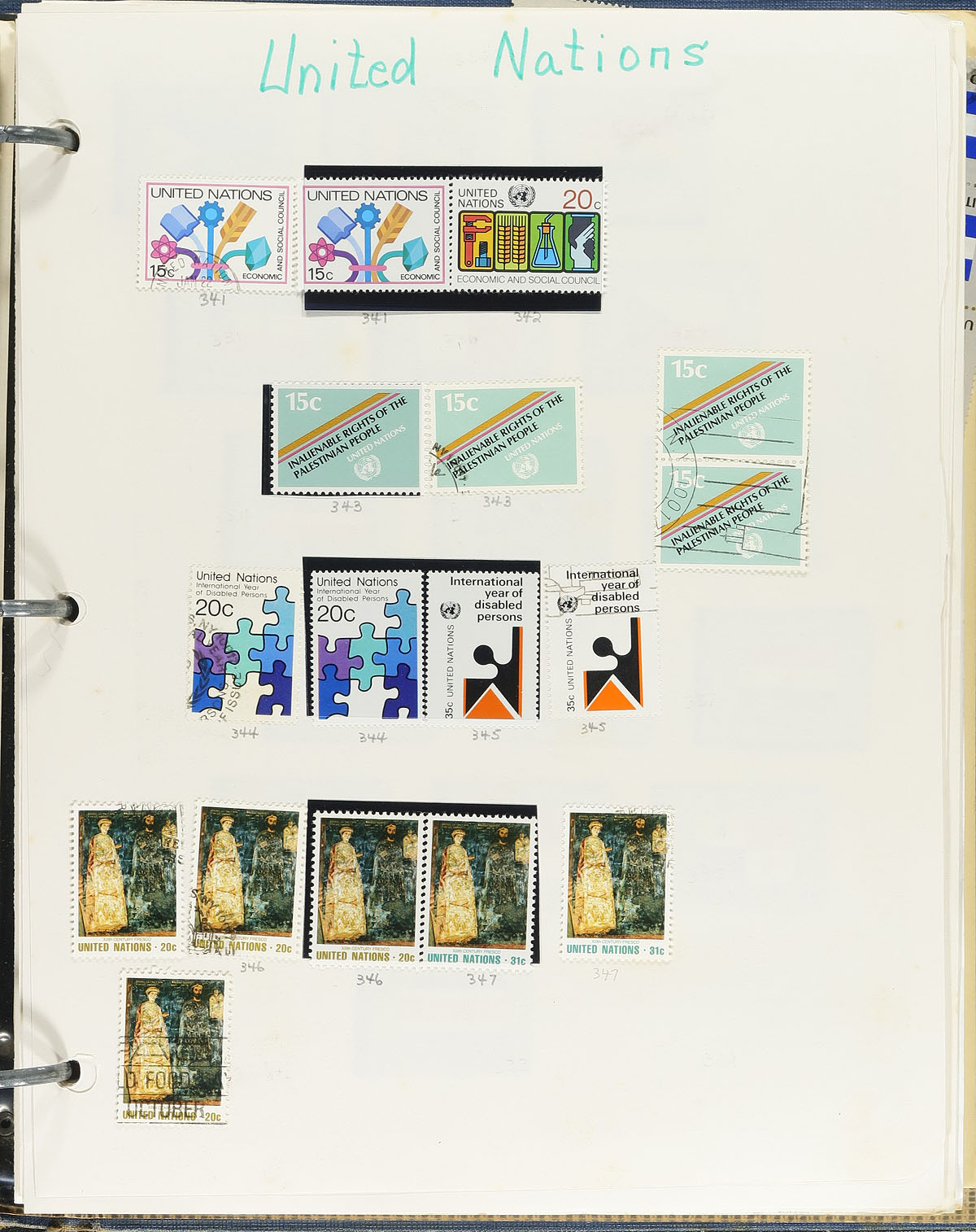Mint (and some used) stamps on album and stock pages, in glassines, plus a couple of binders of presentation cards. Mostly pre-1990, with some duplication. Mostly New York, but some Vienna and Geneva offices. Lots of catalogue value. This was four bidboard lots at one time, plus some extra material. The balance of an estate. Estimate =