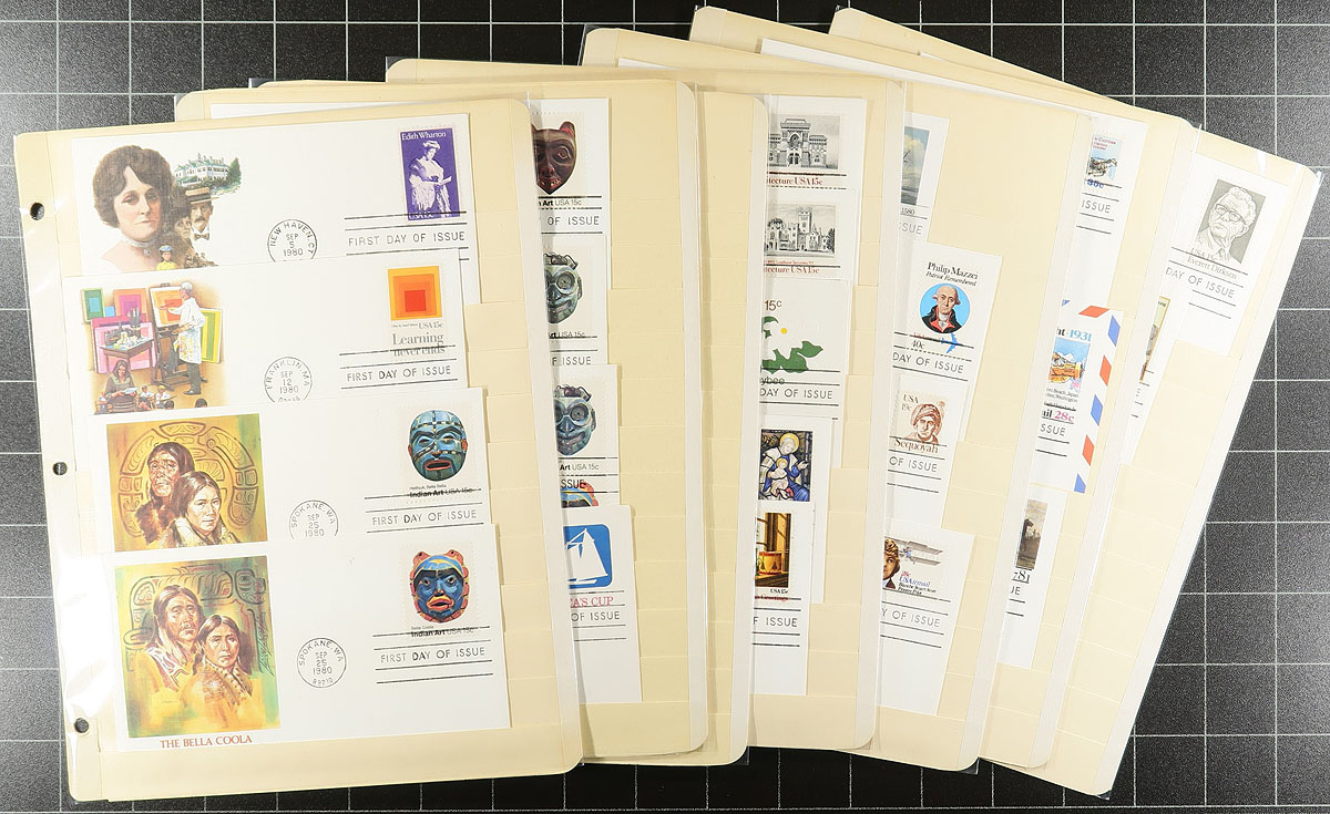 Bankers box full of cacheted First Day Covers, most 1960-early 1990's. This accumulation is from a number of sources and is the balance of an estate. This means there are a number of cachet makers, with Fleetwood, Artcraft, Artmaster, with some Colorano "Silks", and other "one-offs" throughout. Includes quantities of the 20c and 22c "flowers and birds", but generally duplication is light and there is lots to plough through. Estimate =