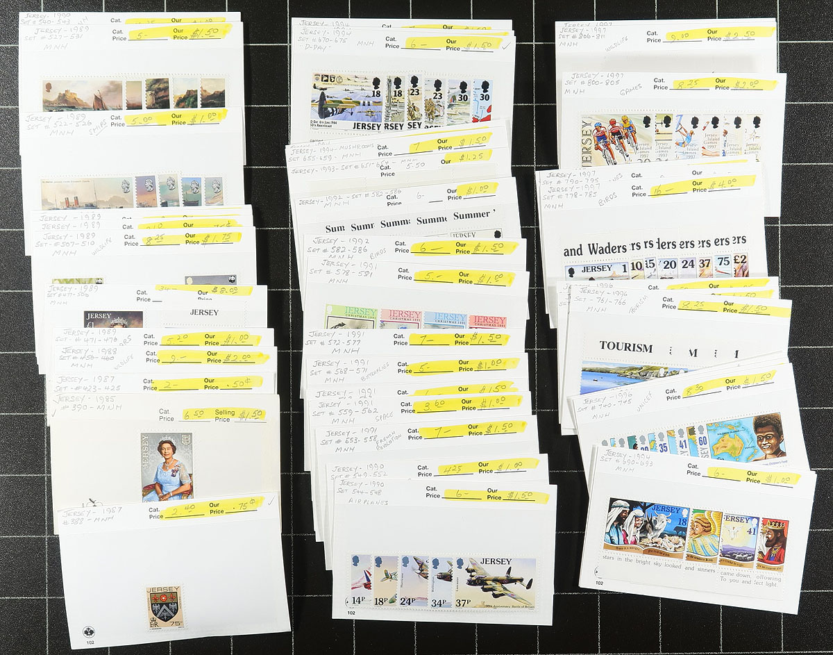 This collector loved the Channel Isle of Jersey and bought it at every turn. While this selection was acquired, the organization is up to you. Includes a big bag of album, stock and approval pages, plus more. About 2/3 is mint, the rest used. Mostly pre-2000, with a mix of singles, sets, souvenir sheets, booklets, sheetlets, etc. Condition is high and duplication is to be expected. A few non-Jersey items are likely included in the mix. Substantial catalogue value here. Estimate =
