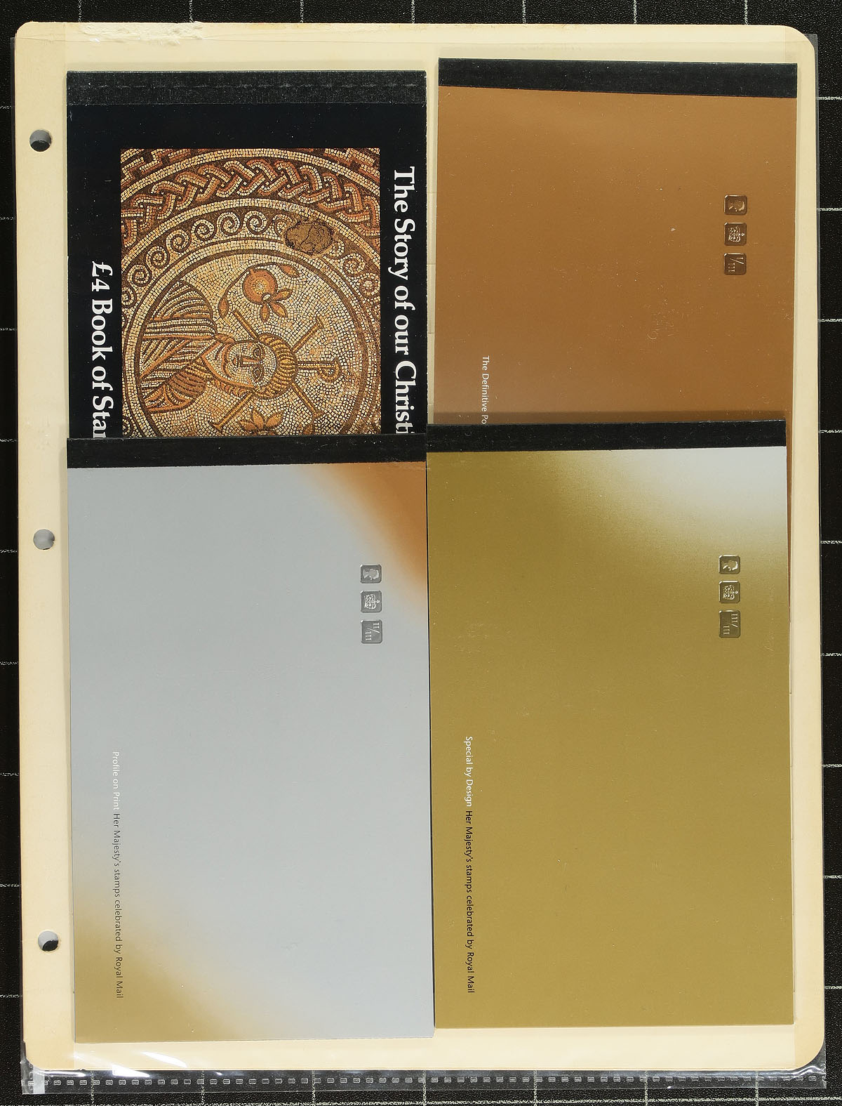 Complete booklets (over 60 mostly different, plus an early QEII blank cover "convenience" booklet), a few presentation folders and a set of King George VI training stamps. A few of the larger booklets are "Prestige" style. Lots of catalogue and original face value here. Condition is well above average. Estimate =