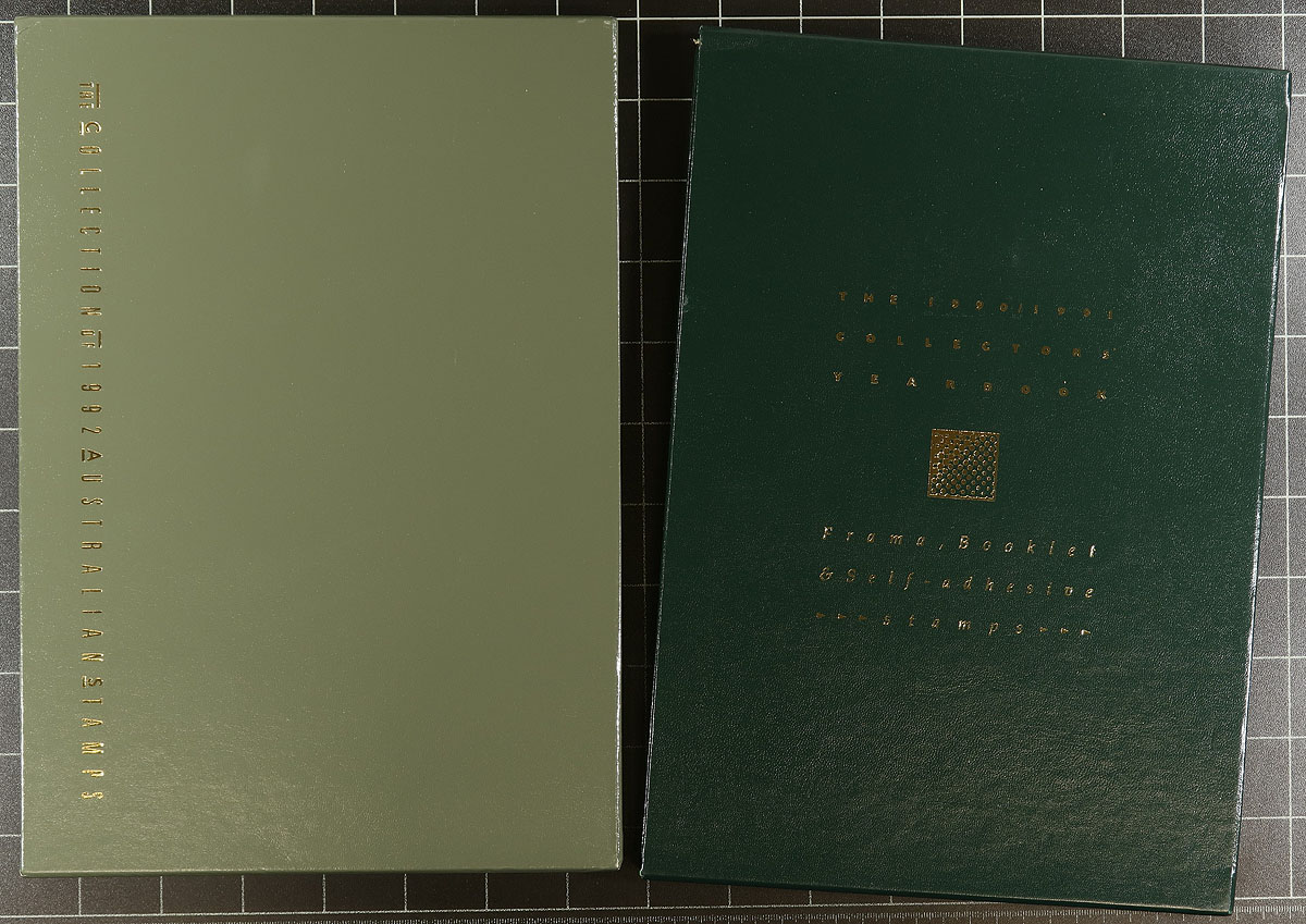 Not your usual annual collections grouping. The lot does have a range of 1981-1992 Australia Post issued annual collections (no 1982 or 1990), and there are three "Collector’s Yearbooks" from 1990-1993 (these have Framas, booklets and self-adhesives). This group of 13 had an original post office cost of about A$350.00. There is also a trio of folders from "Sherwood Philatelic" which have 1985 produced "annual folders" with five years of collections covering 1966-1970, 1971-1975 and 1976-1980, years that Australia Post did not produce annual collections, but they seemed to be jumping on the popularity of this relatively new product. There are some better items here (Explorer set, Christmas 1971 block of 7, etc.). While professionally designed, they obviously had some production challenges (and one has a torn folder from opening). Estimate =