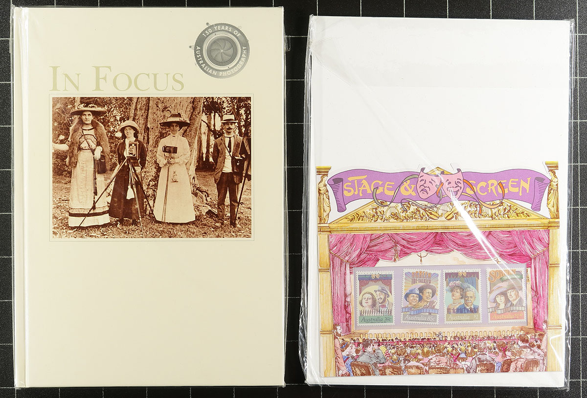 One of Australia Post’s interesting product launches, starting in the 1970's, was the release of hardcover books (like an annual collection) but only for a single issue (often four stamps and/or a souvenir sheet). They included an inserted presentation folder in the package and often charged A$15.00 each for these products. Presumably they were aimed at non-collectors or people looking for a gift for collectors, but they never seemed to be commercially successful as they were largely overlooked by the philatelic community at the time. Skip ahead a few decades and collectors realize how few of these exist (plus their weight to stamp value makes shipping single volumes untenable). This banker’s box includes 11 full sized books, six smaller sized, three soft-cover booklets a folder with a limited edition print for the "Waterbirds of Australia" and three of the "Collector’s Yearbooks" from 1990-1993 (these have Framas, booklets and self-adhesives). Substantial original cost and frankly, not a lot of postage value. Estimate =
