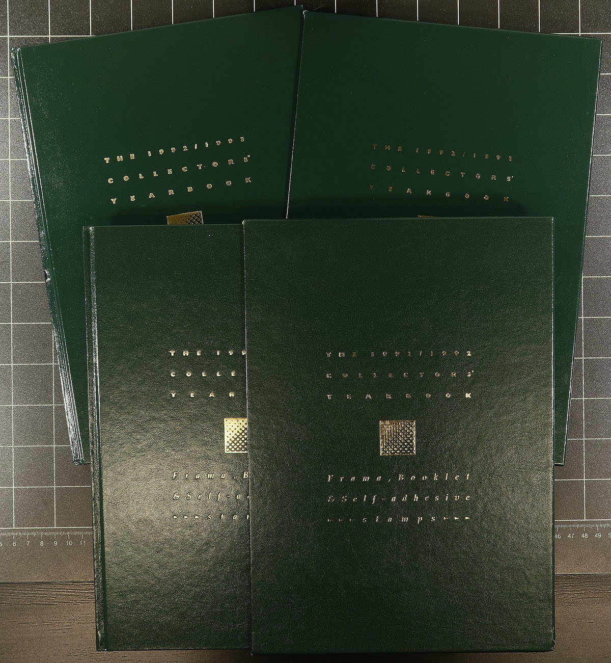 One of Australia Post’s interesting product launches, starting in the 1970's, was the release of hardcover books (like an annual collection) but only for a single issue (often four stamps and/or a souvenir sheet). They included an inserted presentation folder in the package and often charged A$15.00 each for these products. Presumably they were aimed at non-collectors or people looking for a gift for collectors, but they never seemed to be commercially successful as they were largely overlooked by the philatelic community at the time. Skip ahead a few decades and collectors realize how few of these exist (plus their weight to stamp value makes shipping single volumes untenable). This banker’s box includes 11 full sized books, six smaller sized, three soft-cover booklets a folder with a limited edition print for the "Waterbirds of Australia" and three of the "Collector’s Yearbooks" from 1990-1993 (these have Framas, booklets and self-adhesives). Substantial original cost and frankly, not a lot of postage value. Estimate =