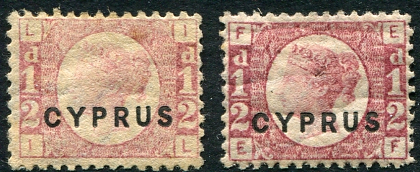A mint Great Britain Queen Victoria "Bantam" duo from plate #12 and #15 overprinted "Cyprus". Original gum, with the usual heavy hinging/remnants. Still an attractive couple with decent perforations and centering. 2025 Scott catalogue value US$365.00 =