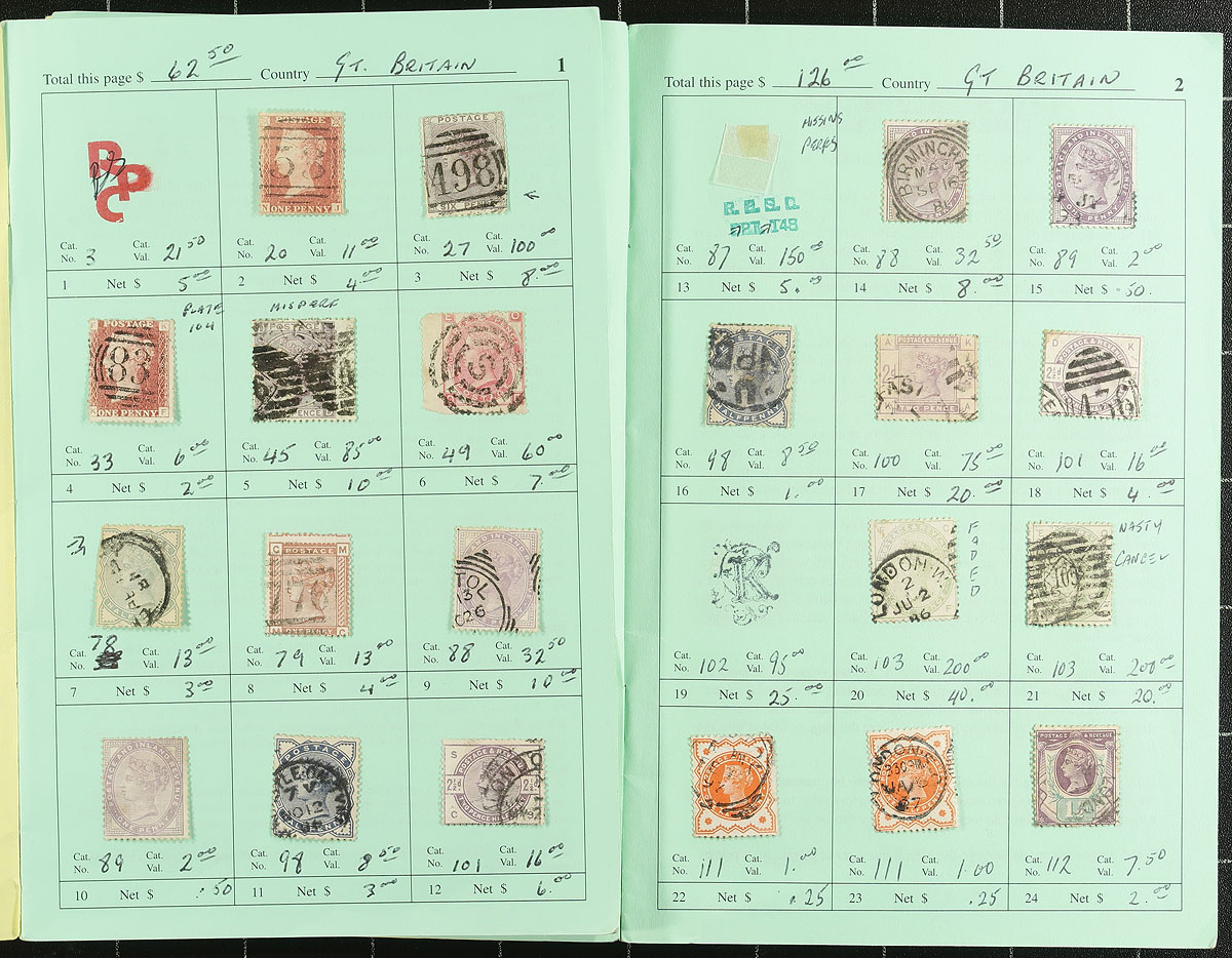 Queen Victoria substantial estate balance. The final section of an estate that we have been breaking up for three years! A mix of treasure and trash, with lots of better singles to 5/- (with catalogue values to $400.00), with some plate, positional and cancel potential. From a number of sources, often bidboard lots. Expect some mixed condition, often in the high catalogue value items. On cards and a couple of retired circuit books (these have some stamps into the mid-QEII era). Patience in sorting will rewarded. Estimate =