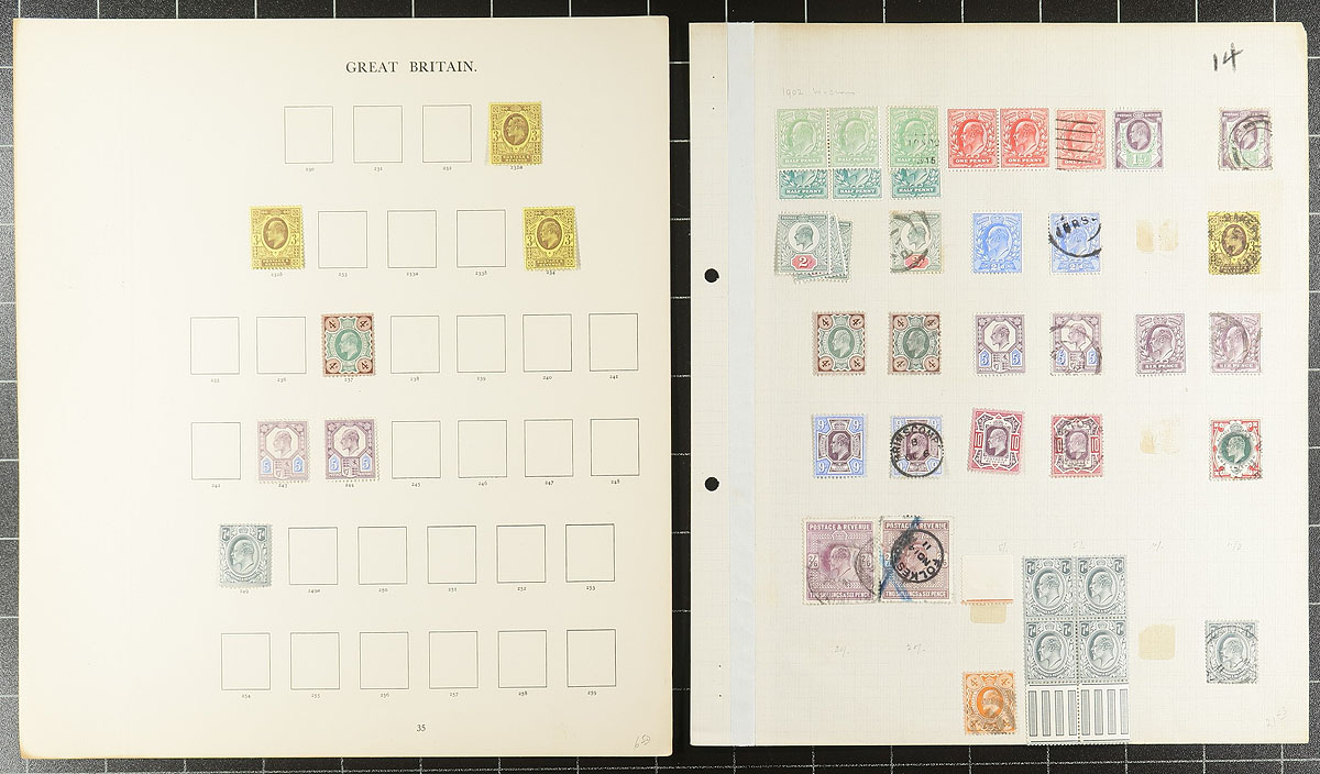 King Edward VII estate balance. An assortment of 16 album pages (from several collections) with a mix of mint and used, a couple of multiples and a page of nicer postal stationery cut squares. Collected by Stanley Gibbons, so lots of shades and printings not listed in Scott. Denominations to 2/6. Noted a couple of perfins. Ignore the catalogue values in the lower corner as these albums date back over 70 years! Lots of value here. Estimate =