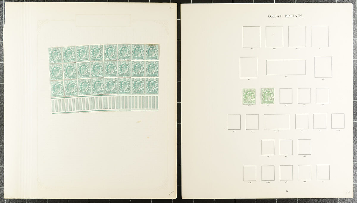 King Edward VII estate balance. An assortment of 16 album pages (from several collections) with a mix of mint and used, a couple of multiples and a page of nicer postal stationery cut squares. Collected by Stanley Gibbons, so lots of shades and printings not listed in Scott. Denominations to 2/6. Noted a couple of perfins. Ignore the catalogue values in the lower corner as these albums date back over 70 years! Lots of value here. Estimate =