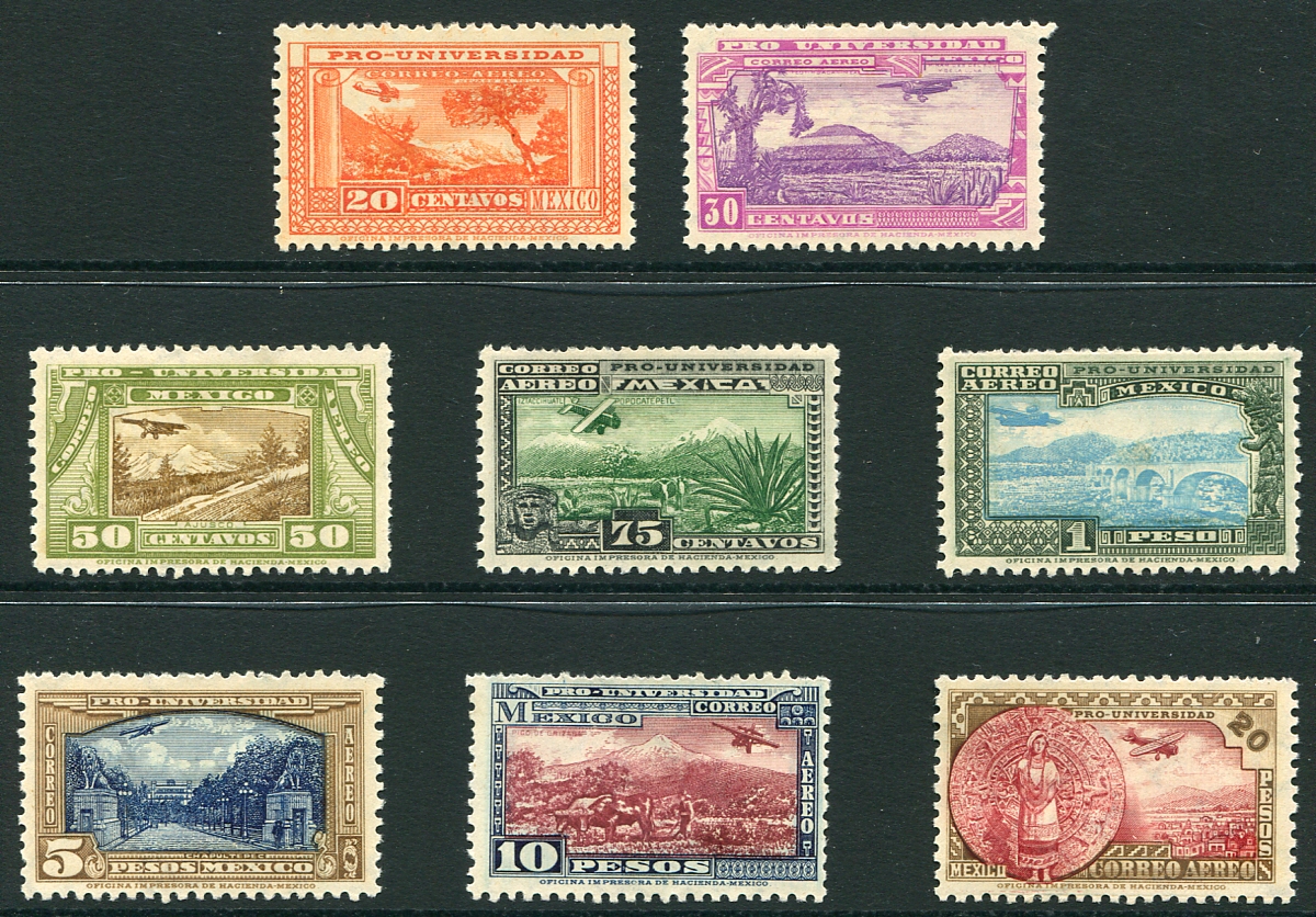 Complete mint Hinged (small hinge remnant) set of the 1934 National University, Airmail series of 8 values. This is the sought-after key-set for the period. The original owner bought these from Stanley Gibbons over 20 years ago. 2026 Scott US$2,685.00 =