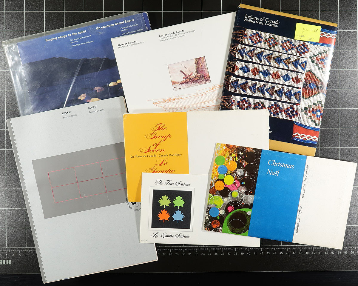 Thematic Collections. Nice group of 48 Thematic collections, 1970-2001, containing Unitrade #s 3-5, 11-15, 17-20, 22, 27 (x2), 28, 29 (x2), 33 (x2), 35 (x2), 36-38, 40-1, 43(x2), 44-47, 49-51, 53-54, 57, 60, 62-63, 66, 72, 78, 98, 103. Almost all of the collections are still in original post office packaging. Clean and very fine. 2025-2026 Unitrade =