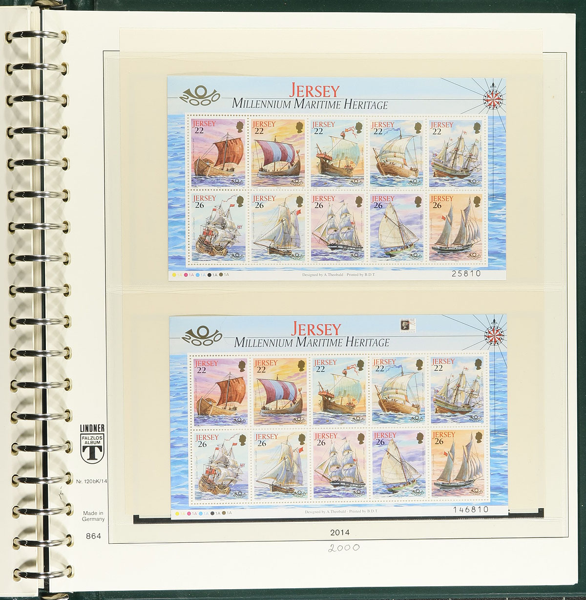 Lovely never hinged collection of modern Jersey, 1991-2014, containing over 900 stamps in thee albums with either stock pages or Lindner hingeless album pages. The collection ranges from Scott #553/1815, containing several sets and souvenir sheets, with strength from 1991-2000 and 2010-2014. A nice lot for collectors and dealers alike. 2026 Scott US$1,568.00 =