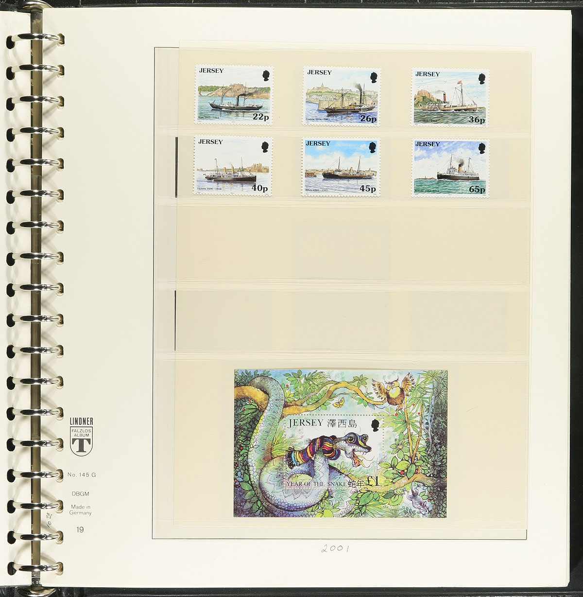 Lovely never hinged collection of modern Jersey, 1991-2014, containing over 900 stamps in thee albums with either stock pages or Lindner hingeless album pages. The collection ranges from Scott #553/1815, containing several sets and souvenir sheets, with strength from 1991-2000 and 2010-2014. A nice lot for collectors and dealers alike. 2026 Scott US$1,568.00 =