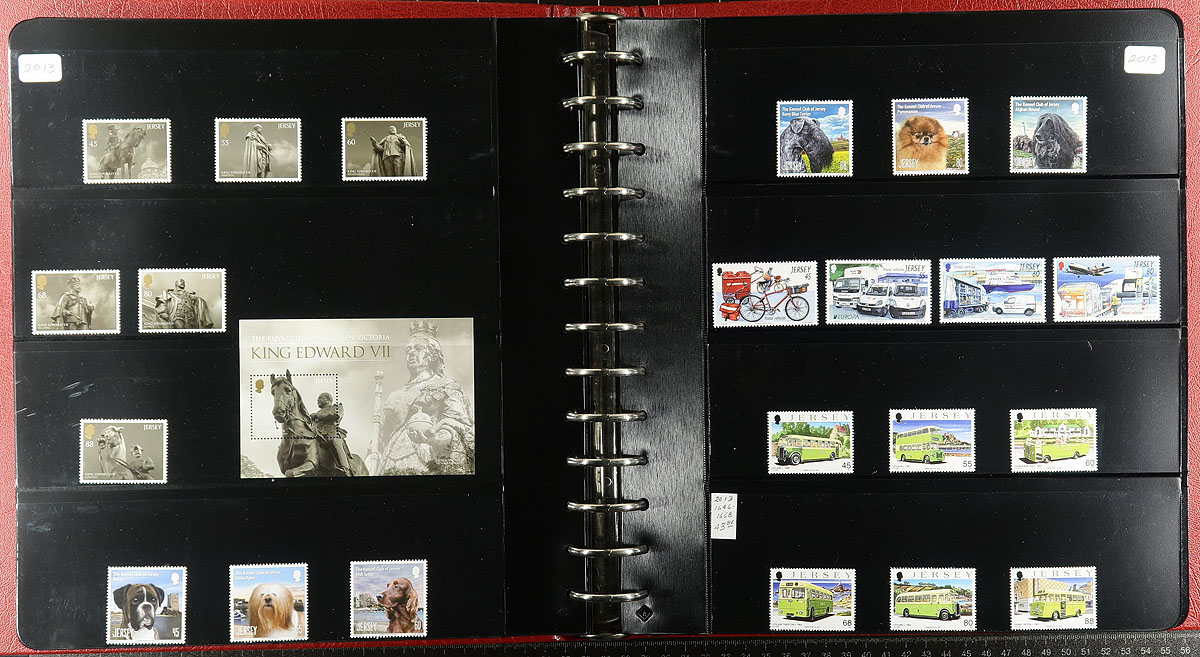 Lovely never hinged collection of modern Jersey, 1991-2014, containing over 900 stamps in thee albums with either stock pages or Lindner hingeless album pages. The collection ranges from Scott #553/1815, containing several sets and souvenir sheets, with strength from 1991-2000 and 2010-2014. A nice lot for collectors and dealers alike. 2026 Scott US$1,568.00 =