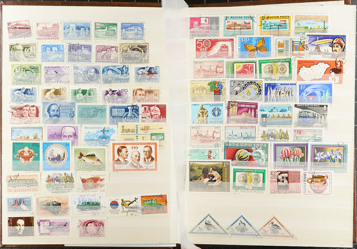 Large group of worldwide material in 6 stockbooks and 4 albums, containing starter collections of Poland, Czechoslovakia, United States, Hungary, and United Nations, along with three worldwide albums containing several hundreds of stamps ranging from the 1890's up to the 1960's (or thereabouts), containing mostly European and British Commonwealth countries. Most of the stamps appear to be used, but did notice some mint stamps scattered throughout. Not checked at all for catalogue values, so could have a few finds. A nice project for the worldwide collector. Estimate =