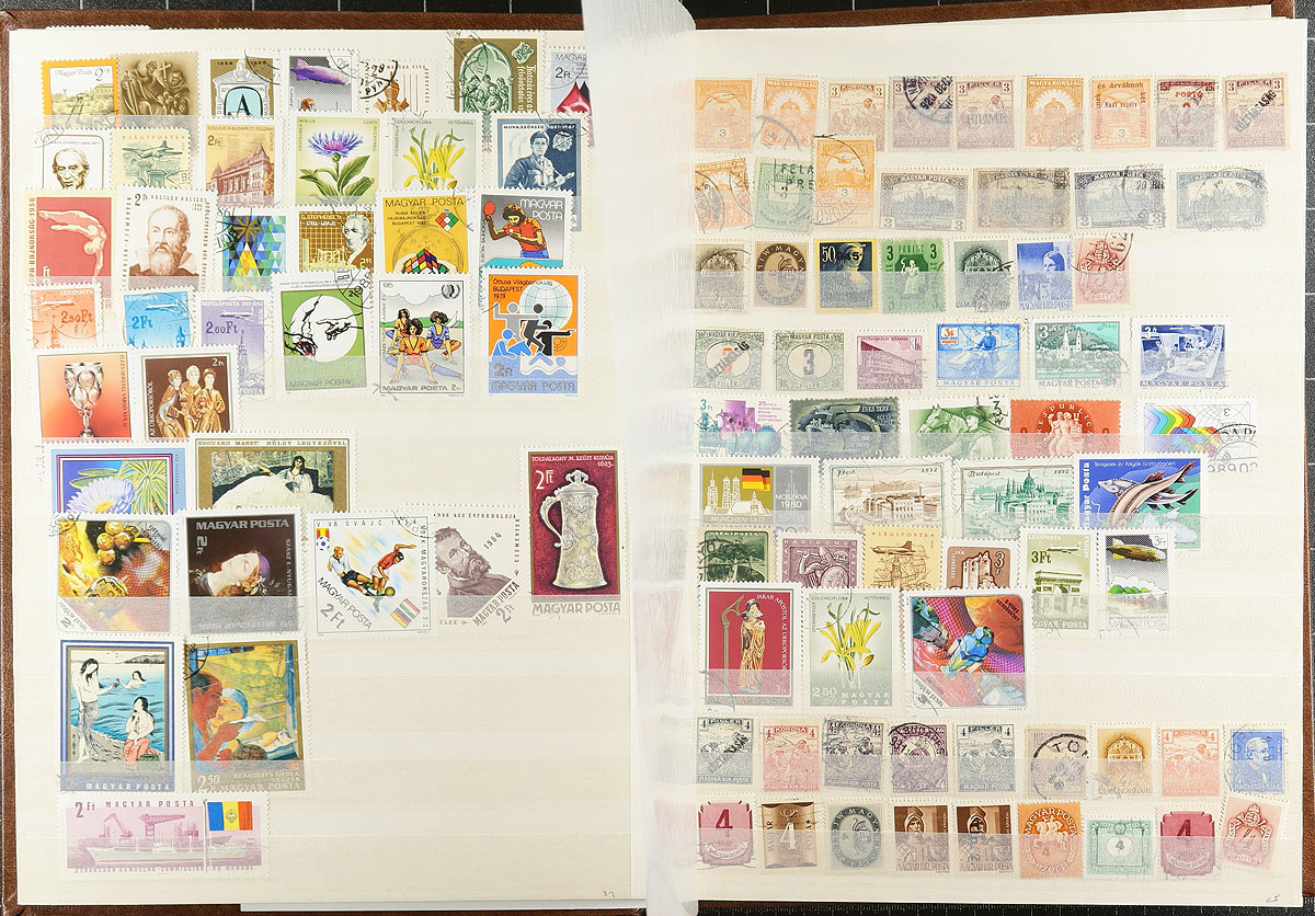 Large group of worldwide material in 6 stockbooks and 4 albums, containing starter collections of Poland, Czechoslovakia, United States, Hungary, and United Nations, along with three worldwide albums containing several hundreds of stamps ranging from the 1890's up to the 1960's (or thereabouts), containing mostly European and British Commonwealth countries. Most of the stamps appear to be used, but did notice some mint stamps scattered throughout. Not checked at all for catalogue values, so could have a few finds. A nice project for the worldwide collector. Estimate =